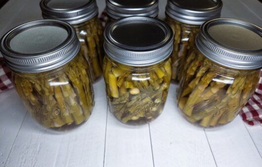 Delicious crisp pickled asparagus recipe and step-by-step canning instructions.
