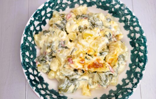 Loaded with two cheeses, bacon, garlic, and green onions—this mashed potato casserole is pure comfort in every bite.