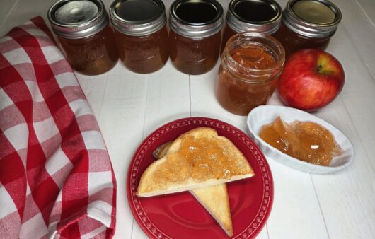 A delightful cinnamon apple jelly with a touch of nutmeg makes the perfect fall treat.