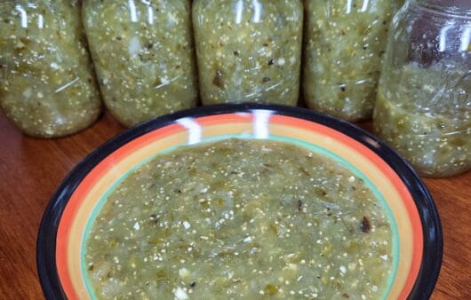 Tomatillo Salsa Verde Recipe & Canning: Garden-fresh tomatillos, onions, hatch and jalapeno chiles, cilantro, lime & garlic.