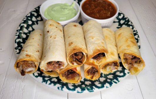 Slow Cooker Shredded Beef Flautas with Avocado Crema