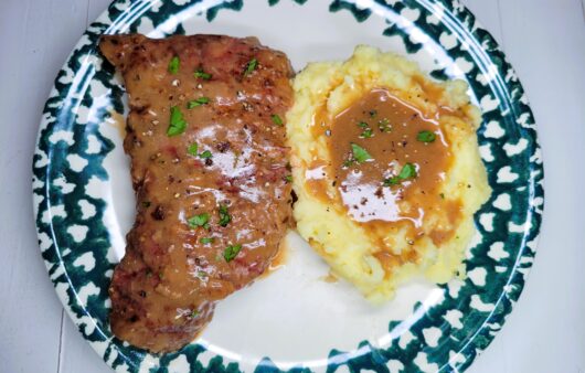 Easy steak & gravy with buttery mashed potatoes. Gravy is rich & full of flavor!