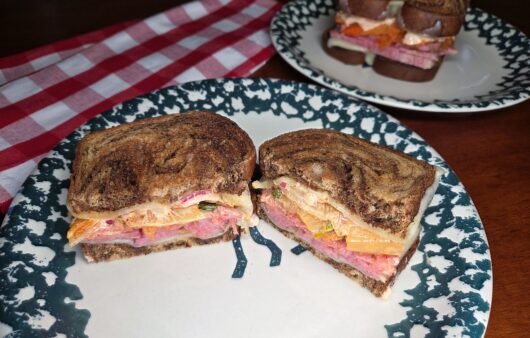 Delicious Kimchi Cabbage & Corned Beef Reuben Sandwich, with Thousand Island dressing