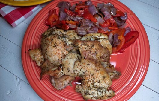 A delicious, quick, and easy meal featuring juicy, seasoned chicken and colorful, healthy vegetables!