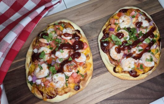 Easy Naan Barbecue Shrimp Pizzas
