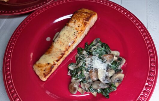 Salmon with Honey‑Mustard Spinach and Mushrooms