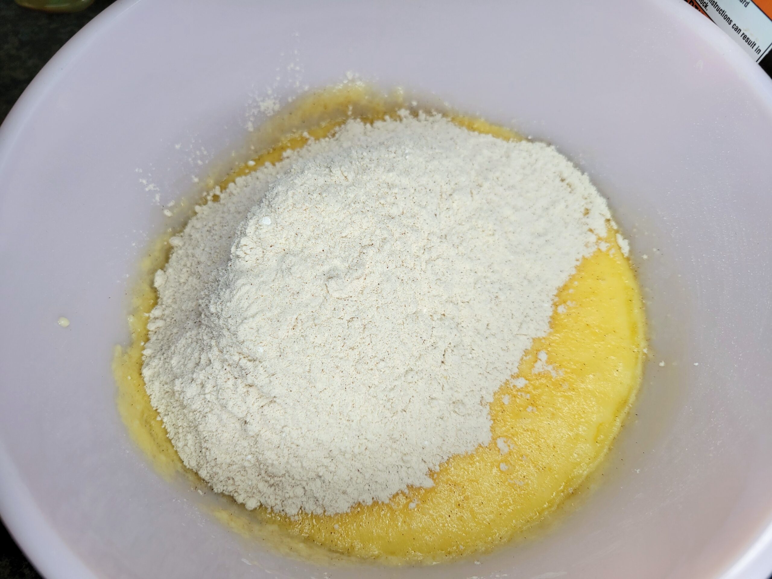 Add flour mixture to the egg and sugar mixture mixing until combined.