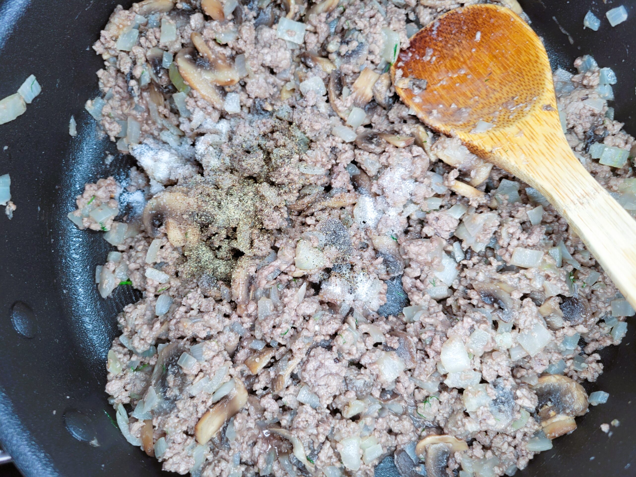 Add 1/2 teaspoon of black pepper and 1 teaspoon of salt, stirring until well combined.