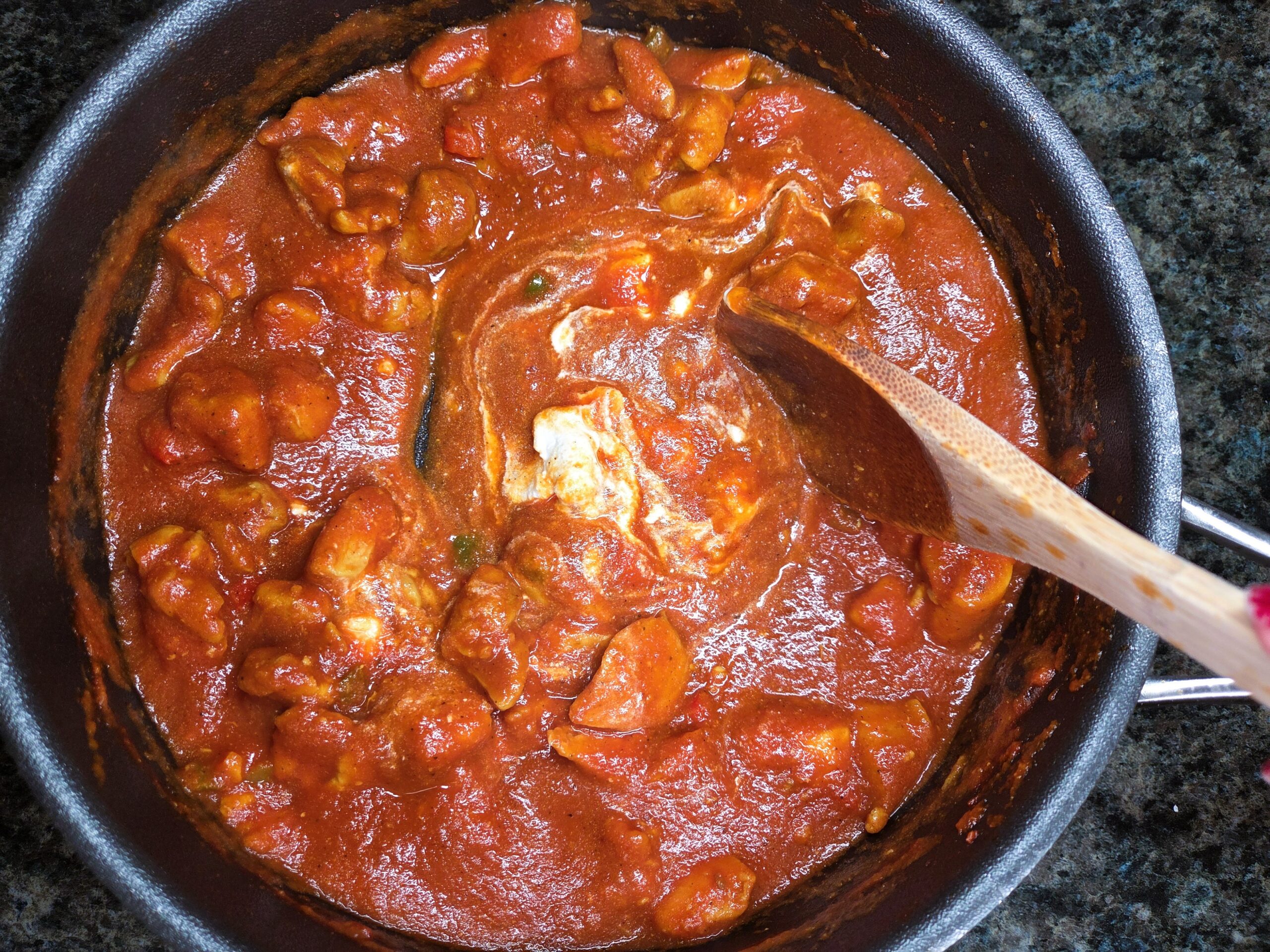 This Indian-inspired dish features mildly spiced chicken thighs cooked in a creamy, curried tomato sauce made with yogurt and butter, creating a rich and luxurious flavor.
