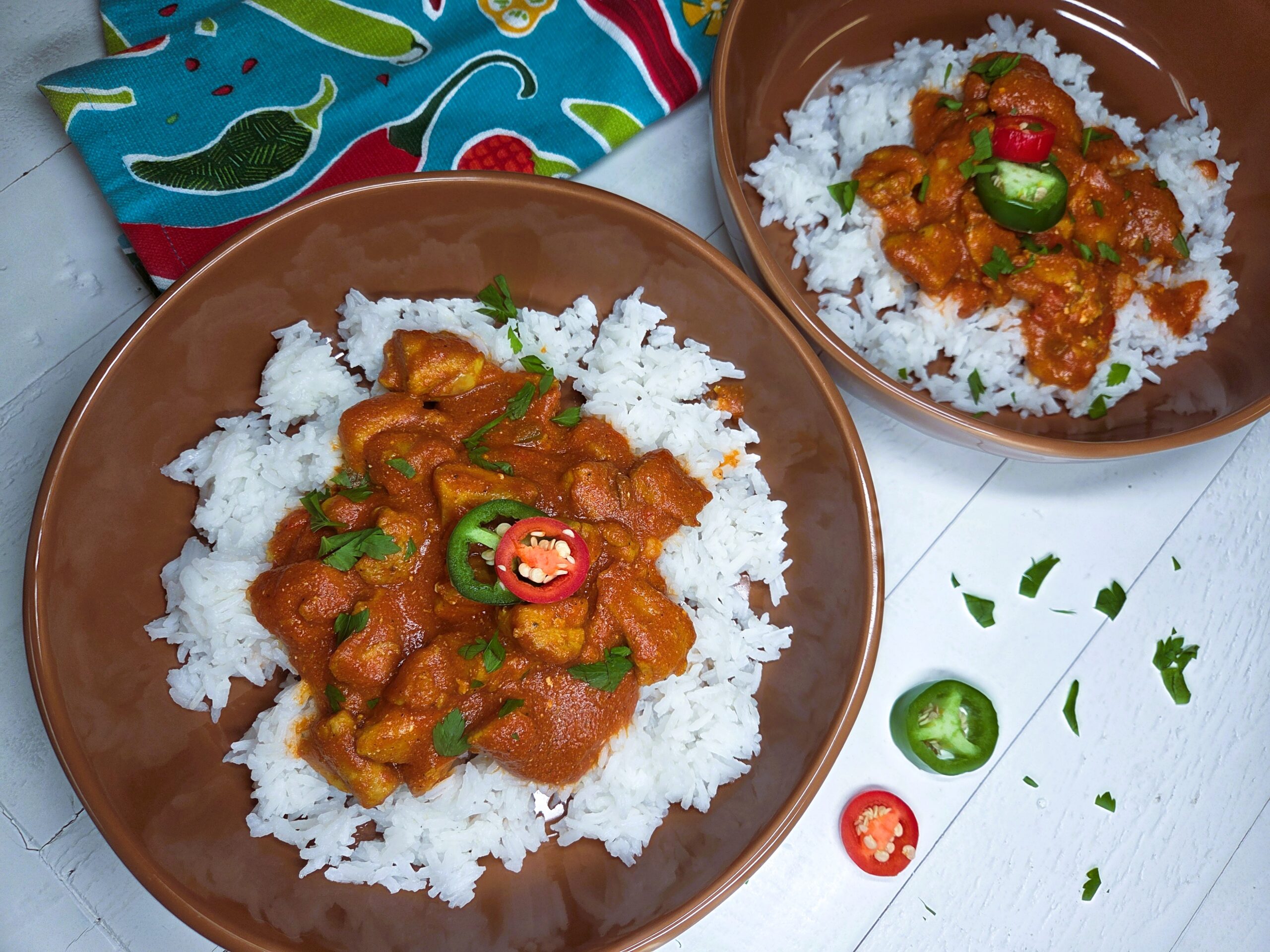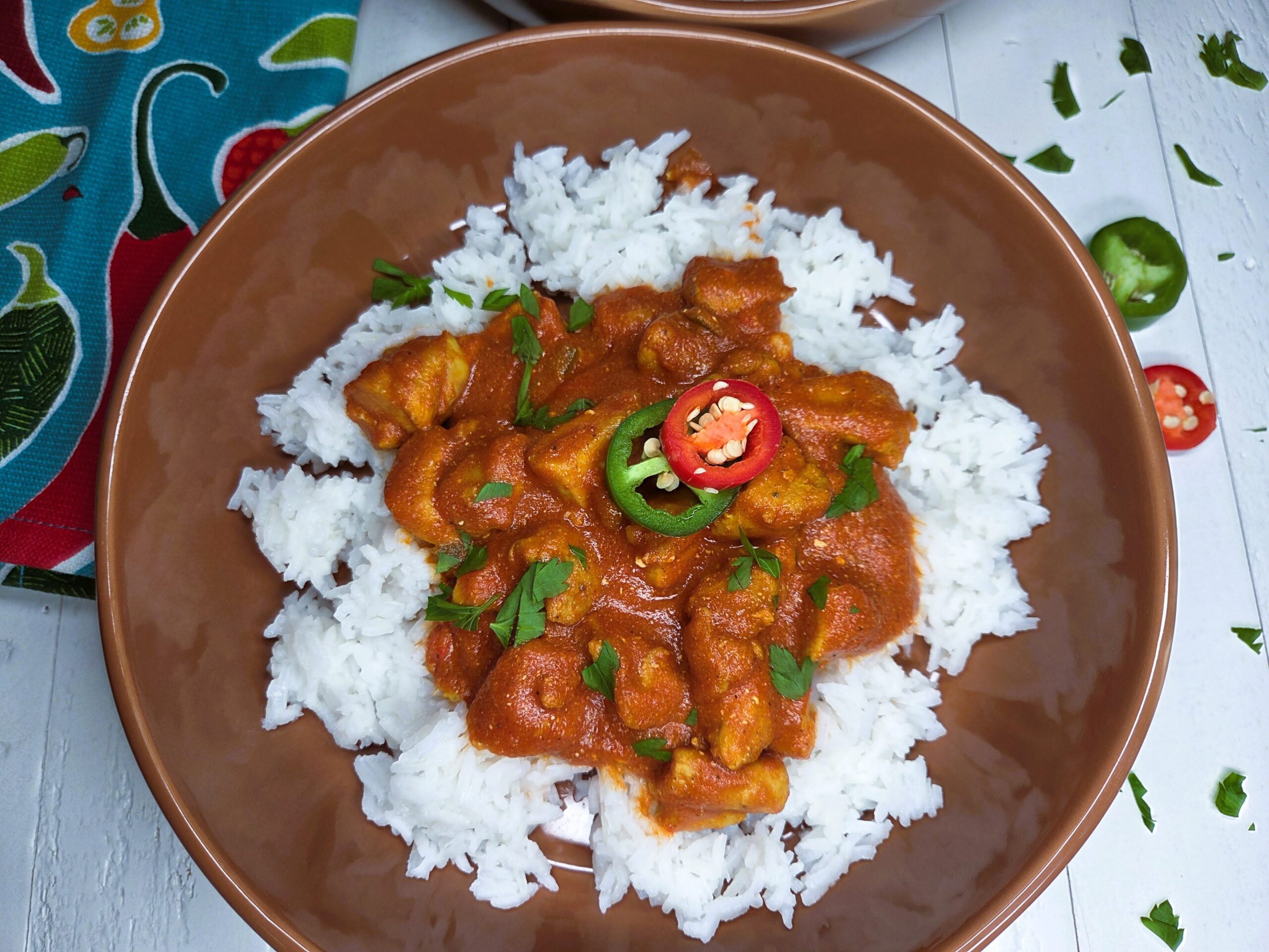 Serve over Basmati rice with freshly chopped parsley and sliced jalapenos. Enjoy!