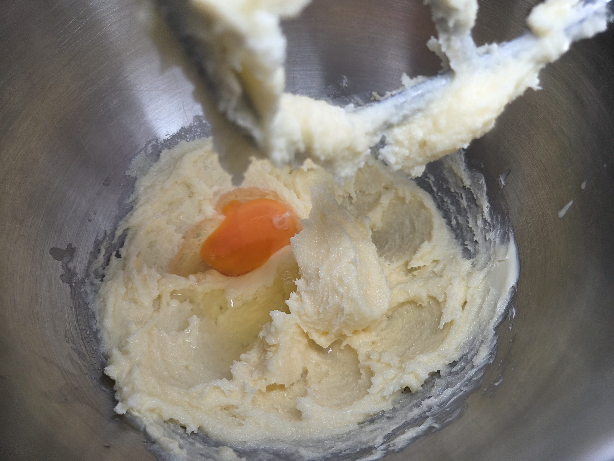 Add 1 whole egg to the bowl, along with 1 1/2 teaspoons of almond extract mixing until combined.