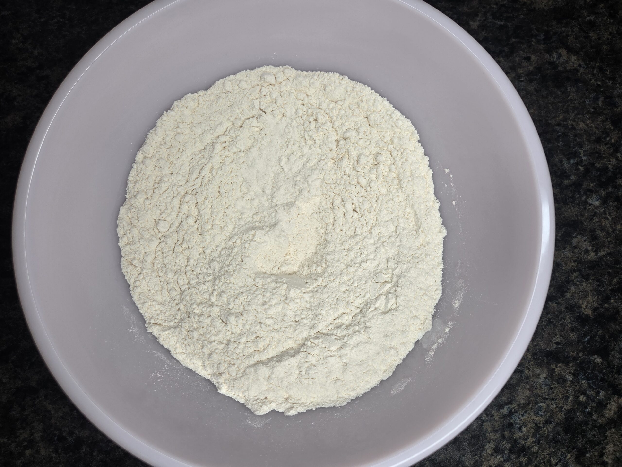 In a separate large bowl, mix together 2 cups of all-purpose flour, 1 teaspoon of baking powder, 1/2 teaspoon of baking soda, and 1/2 teaspoon of salt until well combined.