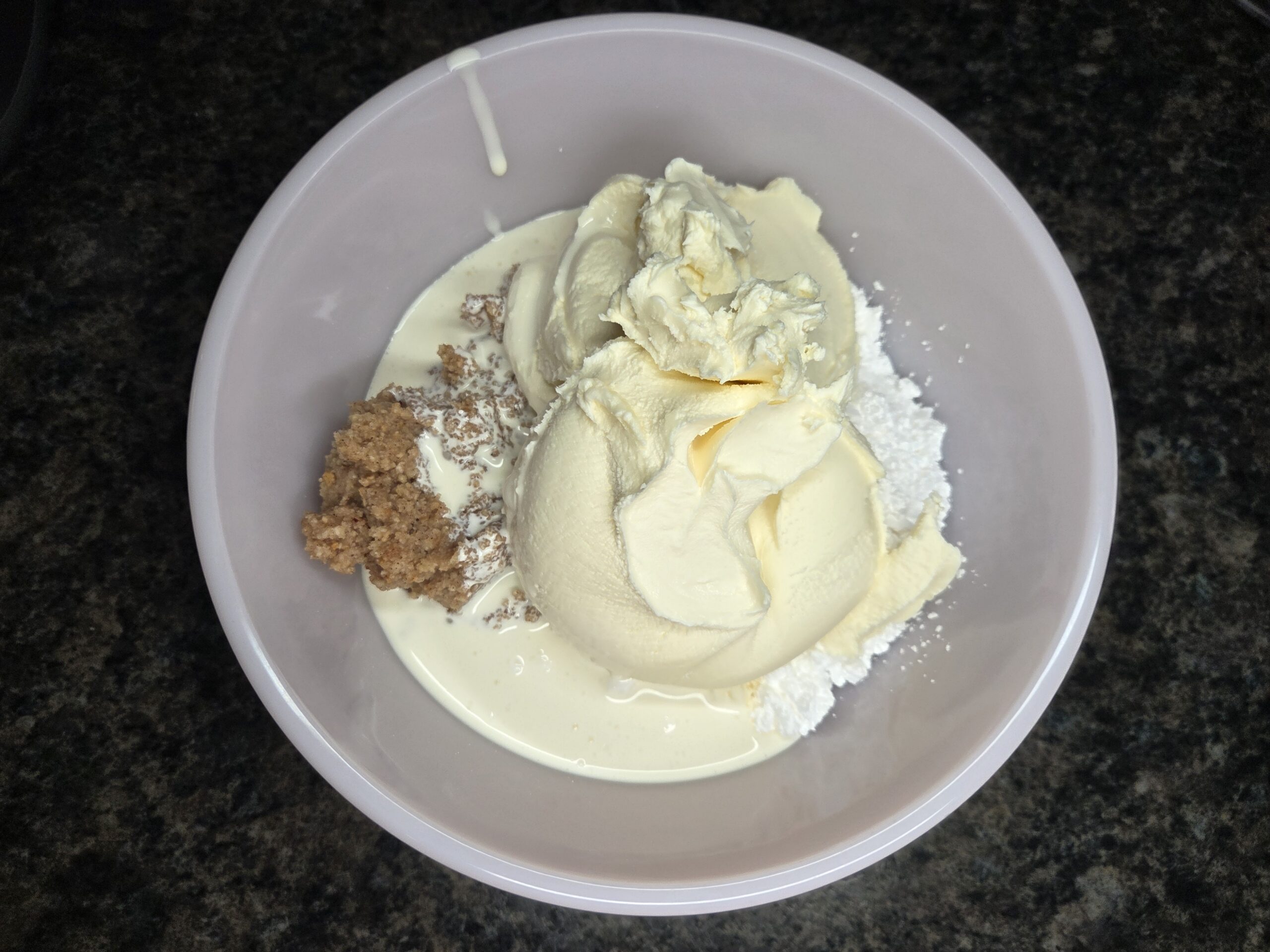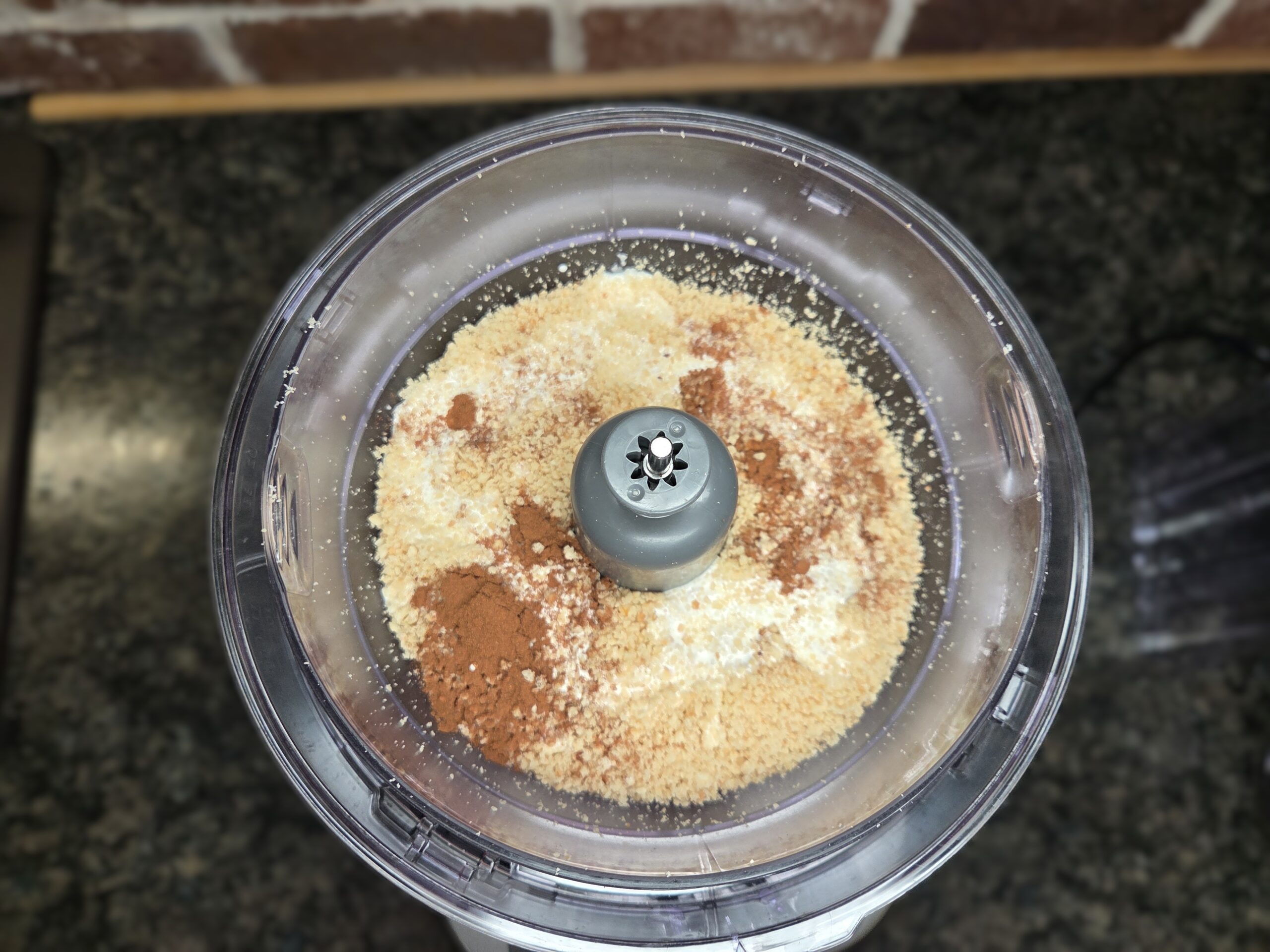 Then add 1/2 teaspoon of cinnamon and 1/4 cup of heavy cream. Pulse again until everything comes together into a smooth paste. Add the paste to a large mixing bowl
