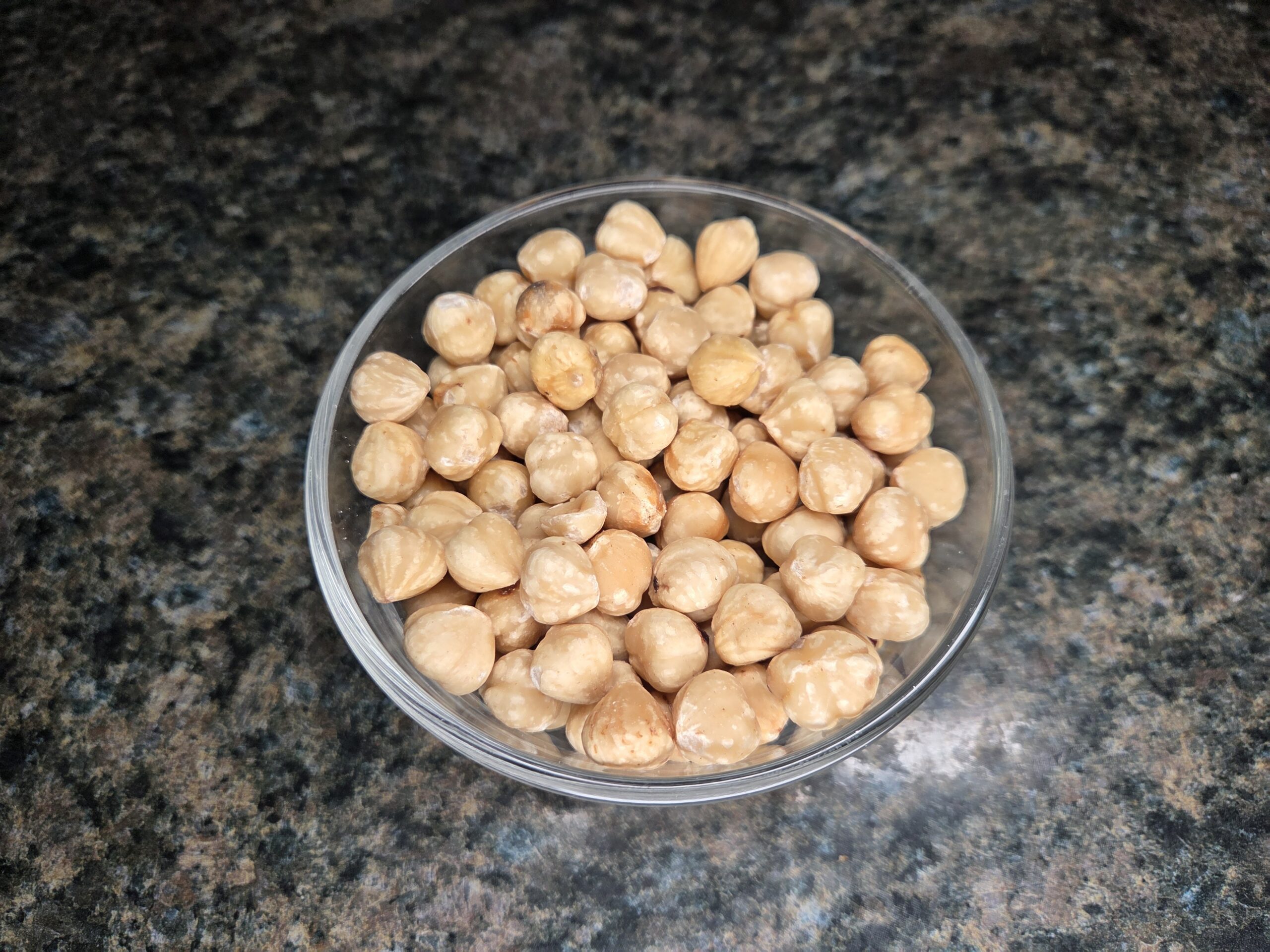 If your hazelnuts are already skinless and toasted, you can skip this step—first toast the hazelnuts. To toast hazelnuts on the stovetop, scatter them in a dry skillet over medium heat. Let them warm through, stirring occasionally, until they smell nutty and turn golden—usually about 5–10 minutes. To remove the skins, wrap the warm nuts in a clean kitchen towel. The steam helps loosen the skins, and after a minute or two, you can gently rub the nuts inside the towel to brush most of the skins off.