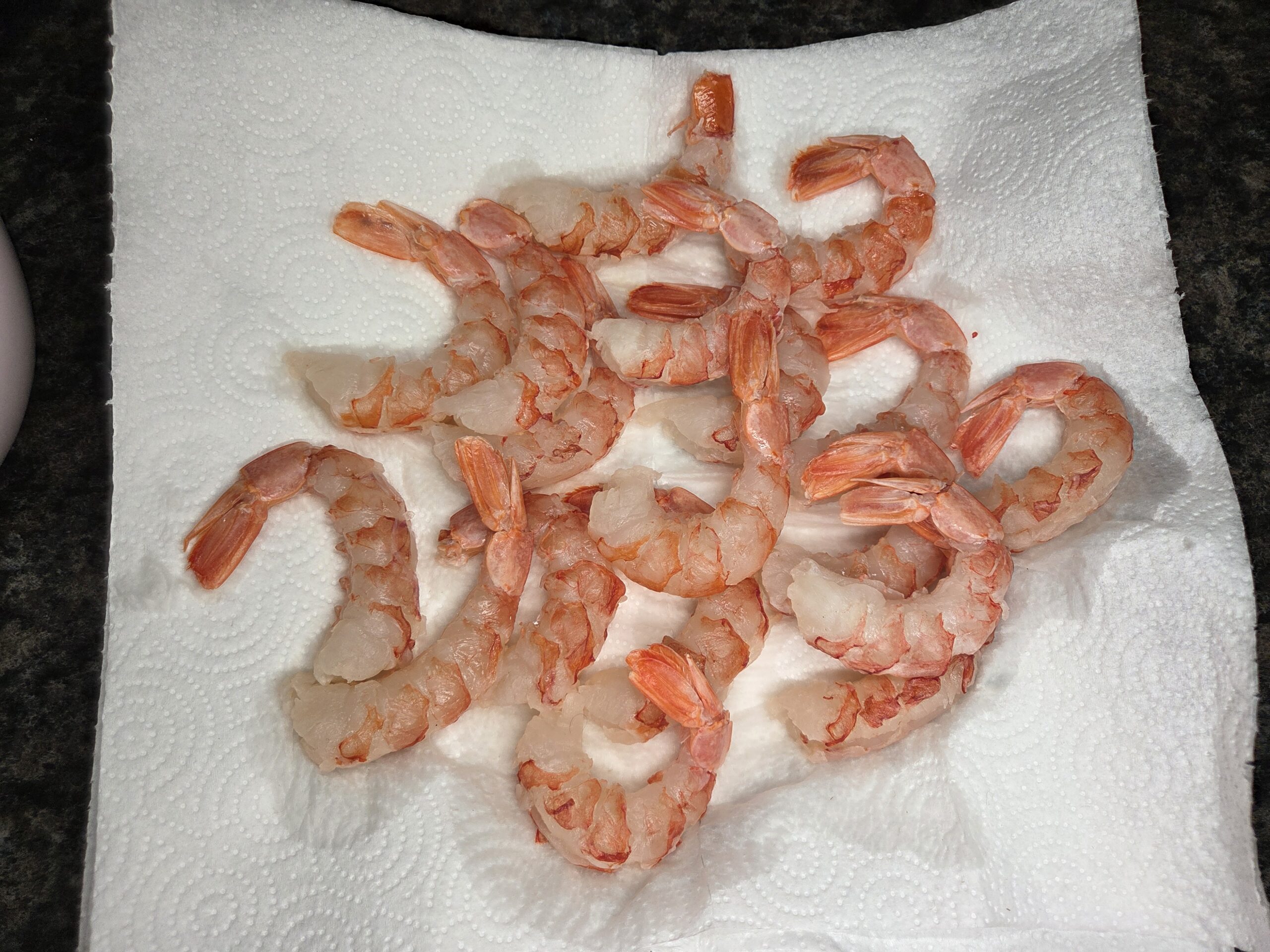 Peel and devein the shrimp, then pat them completely dry with paper towels before frying.