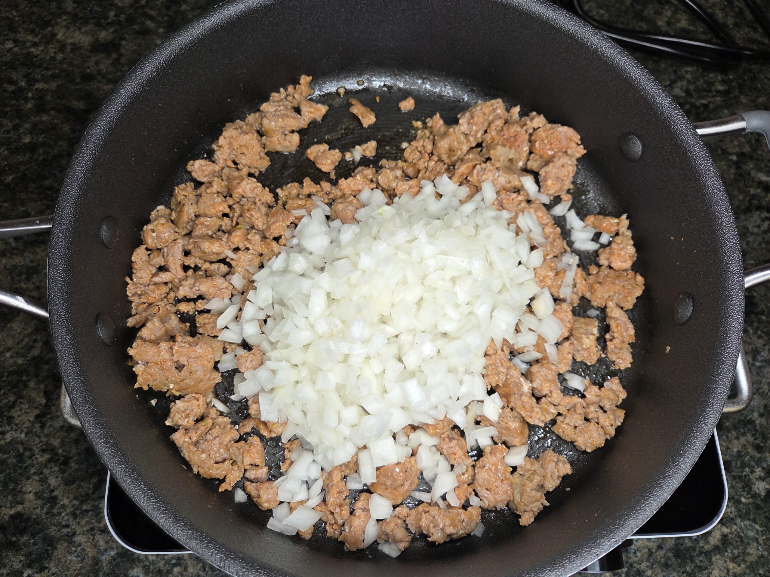 Add the diced yellow onion and sauté until softened, about 4–5 minutes.