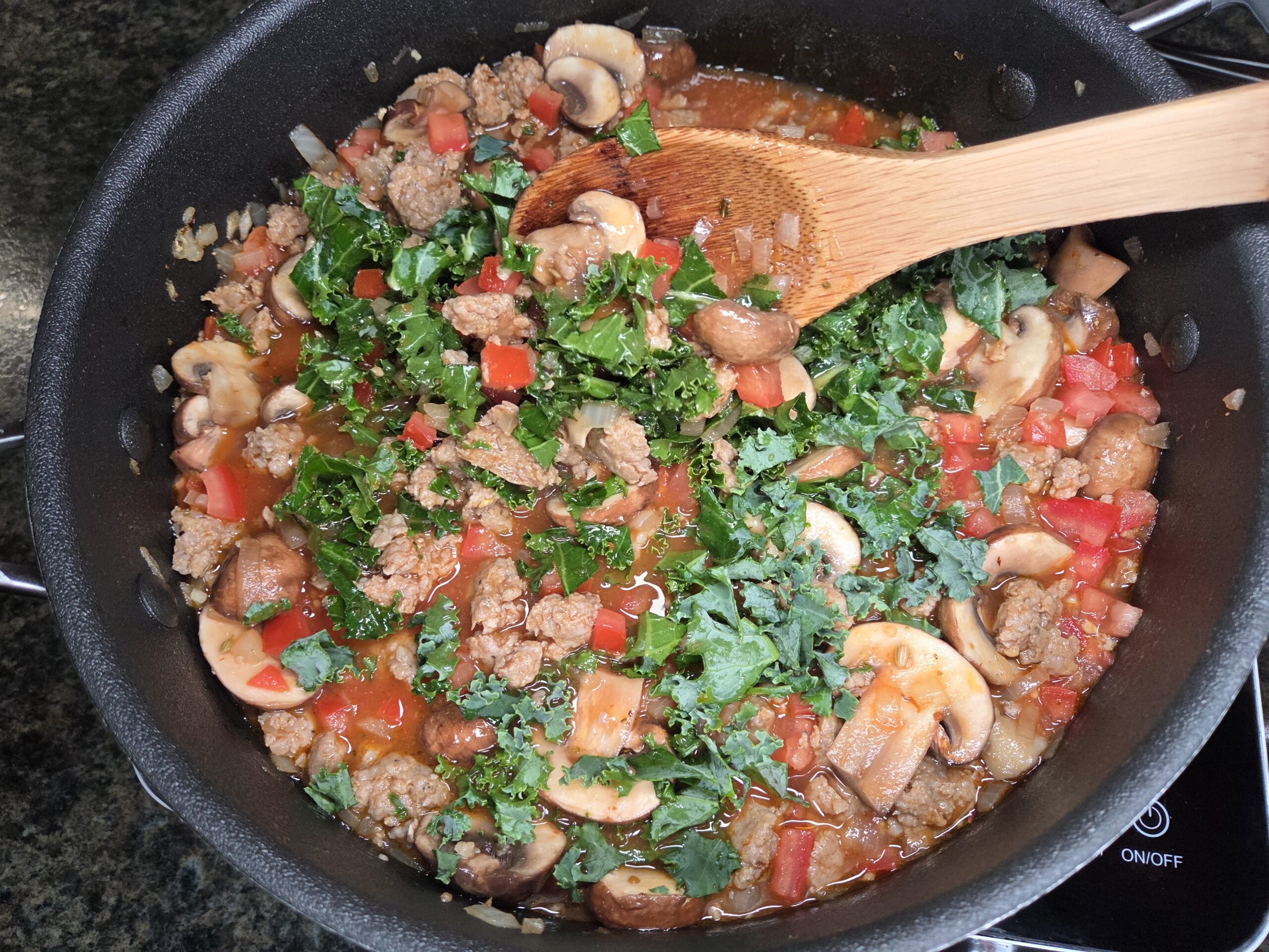 Stir in 1 1/2 cups of chopped kale and cook until wilted.
