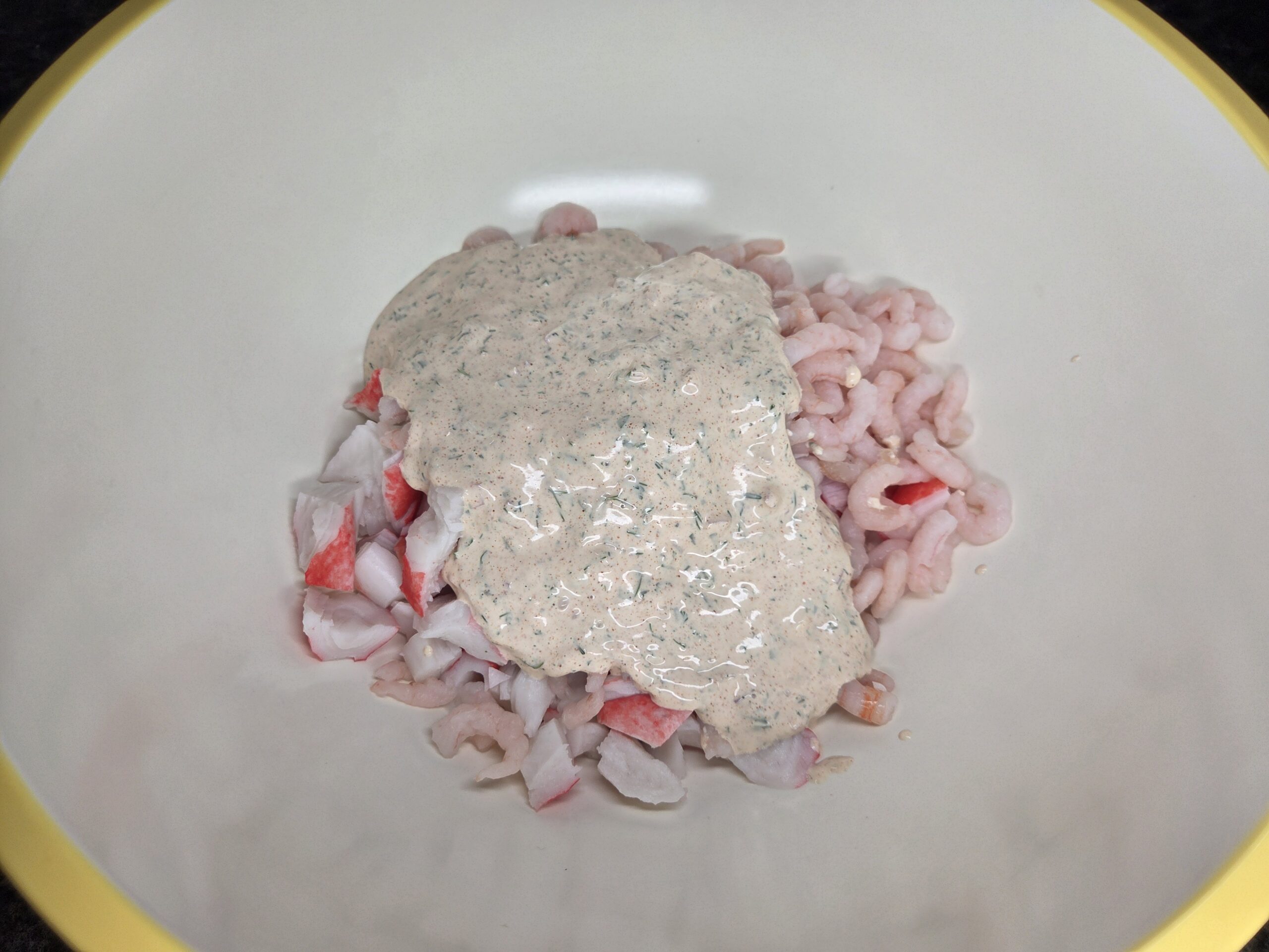 Add the dressing to the seafood and gently stir until everything is evenly coated. Cover and chill for at least a couple of hours, preferably overnight, to let the flavors fully develop before serving.