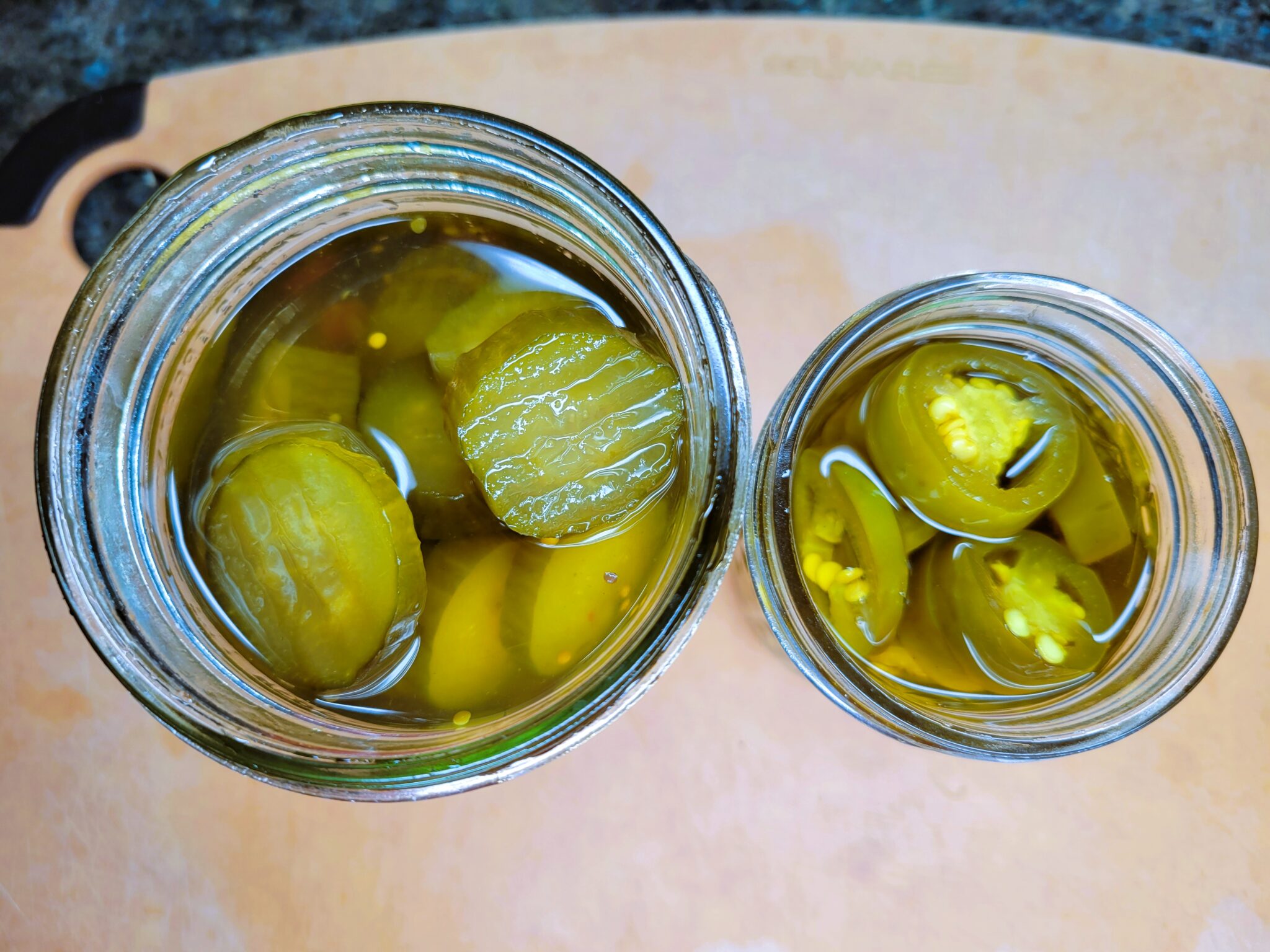 Stir in ¼ cup mayonnaise, 2 teaspoons Dijon mustard, 1 tablespoon sweet pickle relish, 2 teaspoons white wine vinegar or pickling brine, ½ teaspoon smoked paprika, and ¼ teaspoon garlic powder. Pickling brine — the tangy liquid from jars of pickled peppers and dill pickles — adds a bright, savory depth that works beautifully in deviled potatoes. Mix the filling until it’s smooth and creamy. Spoon it into the potato shells or use a piping bag for a more decorative look. Finish each deviled potato with a small slice of pickled peppers for a bright, tangy garnish.