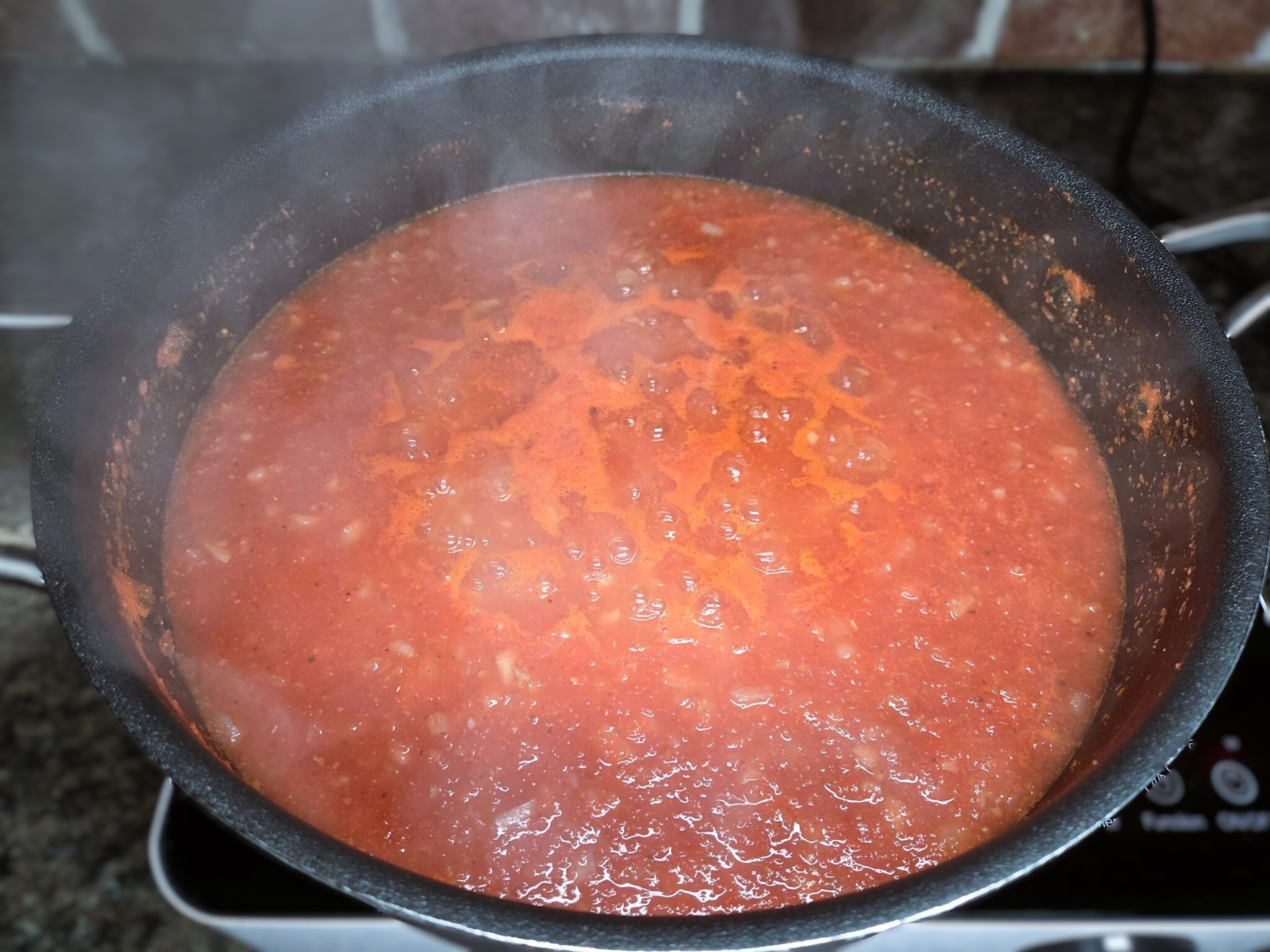 Add the tomato mixture to the skillet or pot, season with salt and pepper, and bring it to a gentle boil. Reduce the heat to a simmer and cook for 15–20 minutes, or until the sauce thickens, the color deepens to a rich red and reaches your desired consistency.