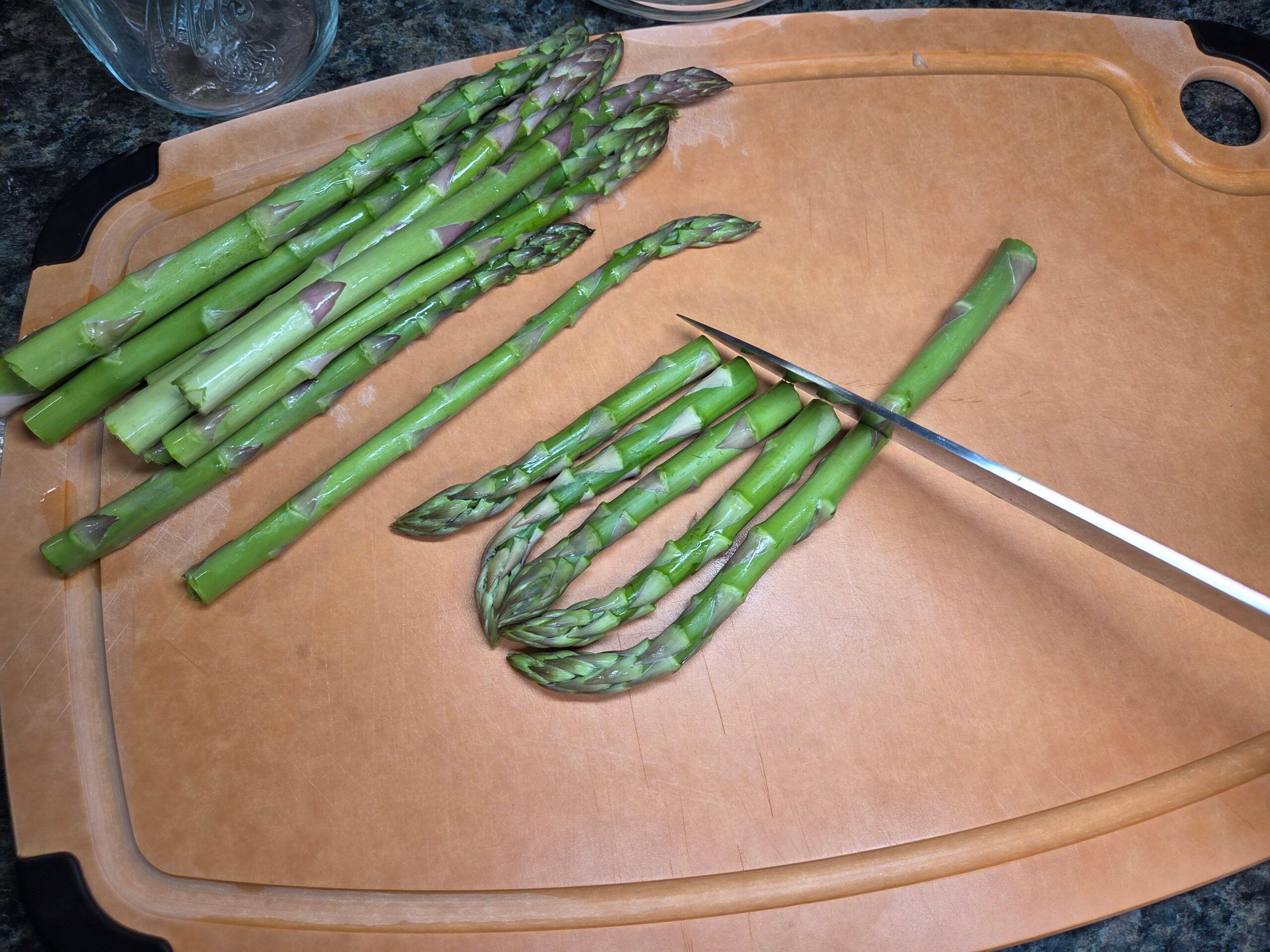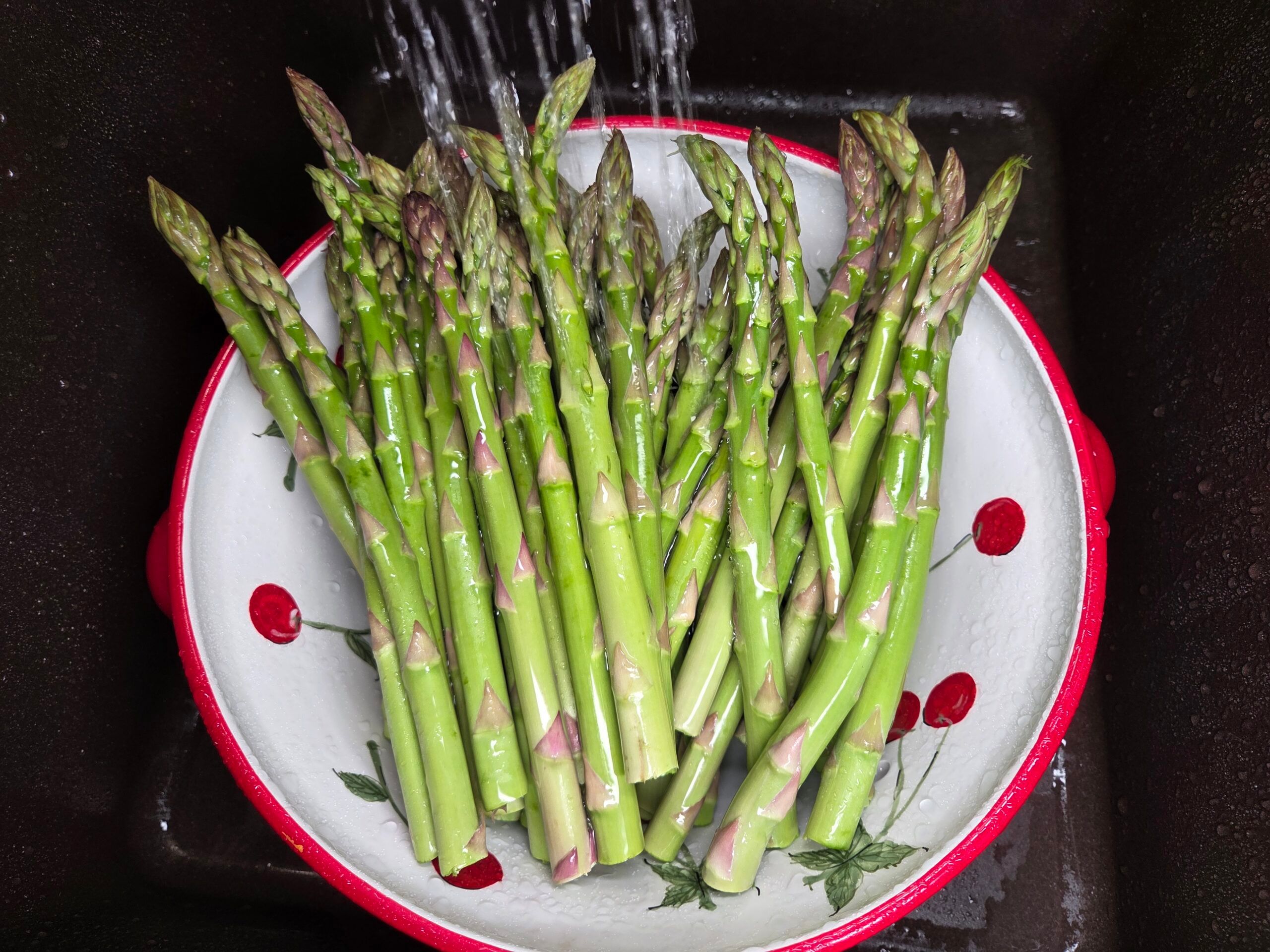 Choose medium asparagus spears when canning. Rinse the asparagus thoroughly under cool water, removing any spears that are damaged, discolored, or soft.