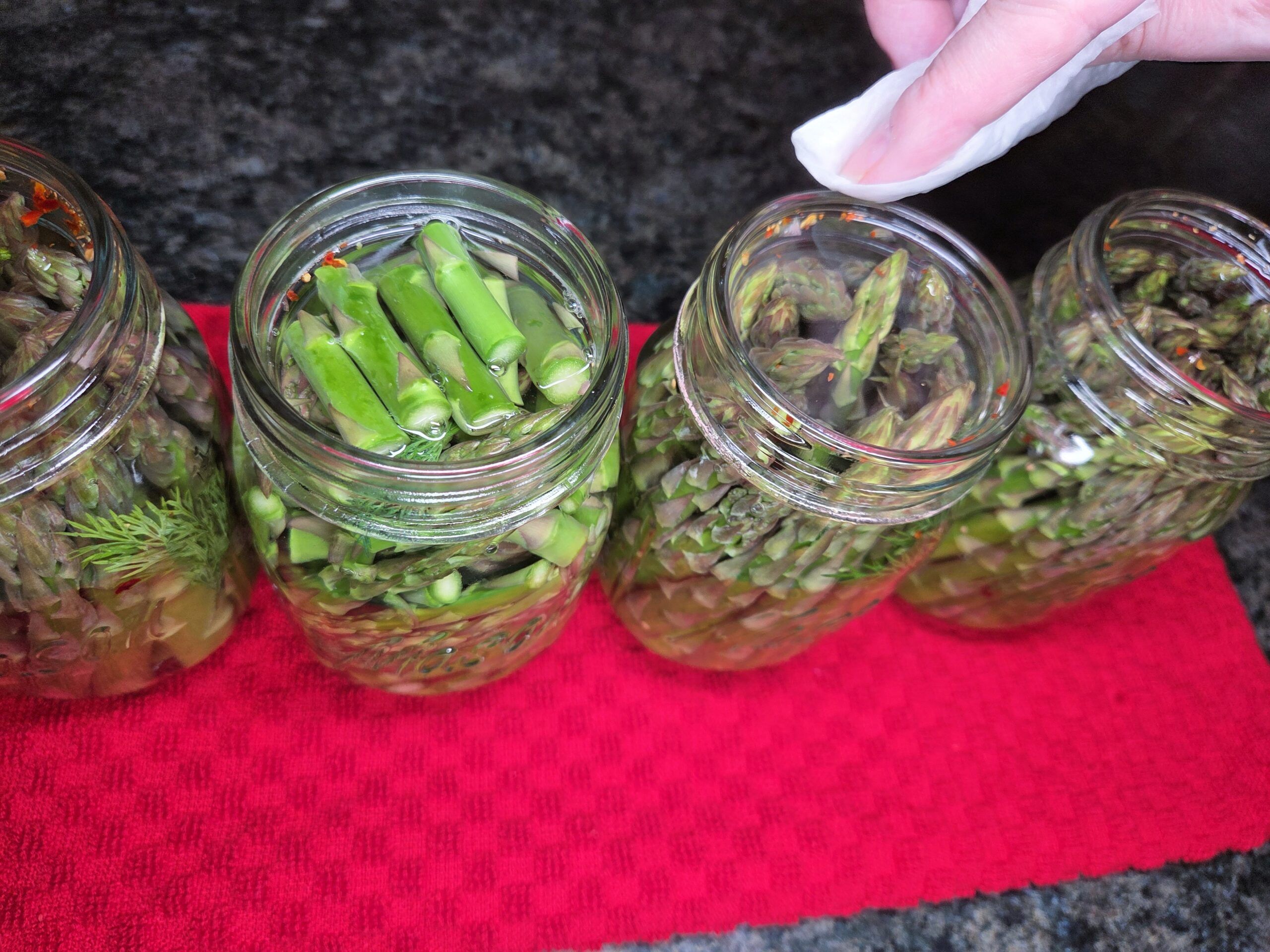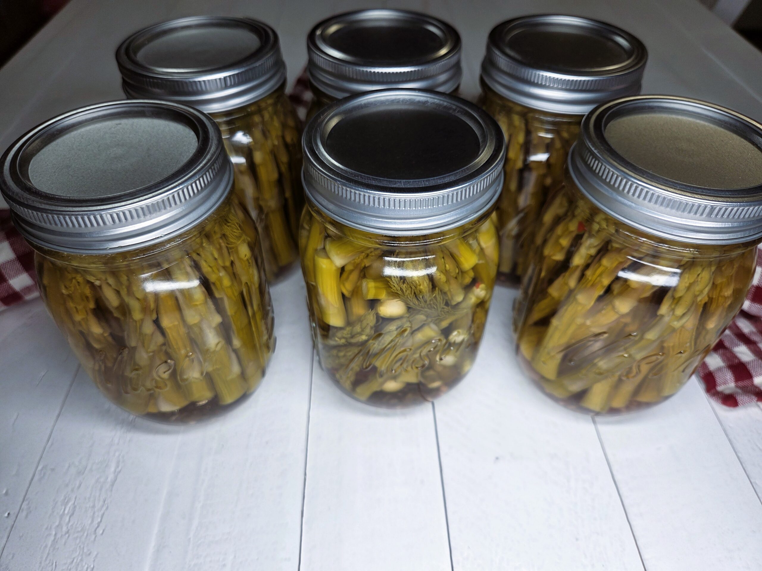 Delicious crisp pickled asparagus recipe and step-by-step canning instructions.