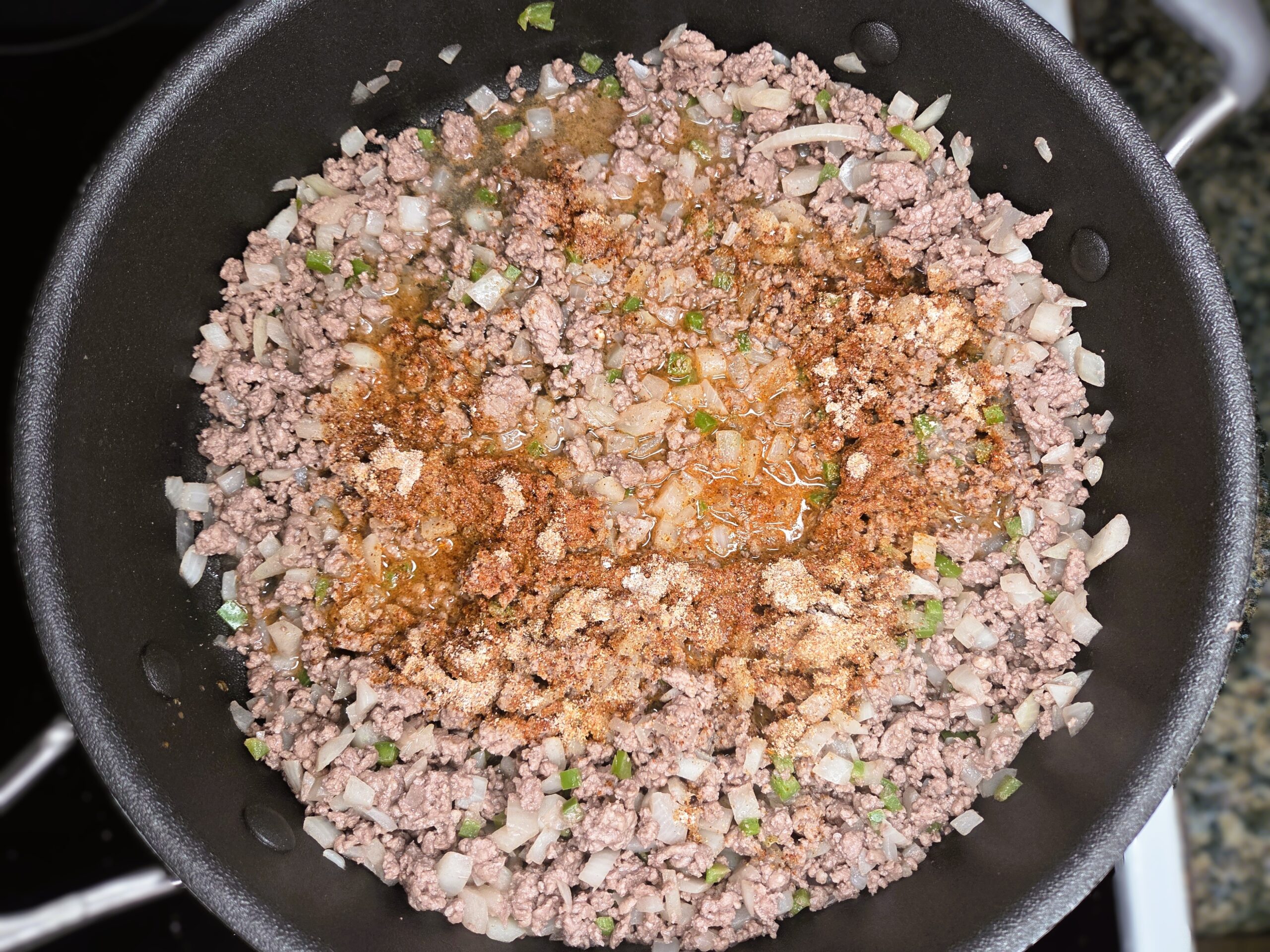 Preheat the oven to 350°F. To make ground beef seasoning, combine 1 teaspoon each of chili powder, paprika, cumin, salt, garlic powder, onion powder, and cornstarch in a small bowl. Mix well and set aside.