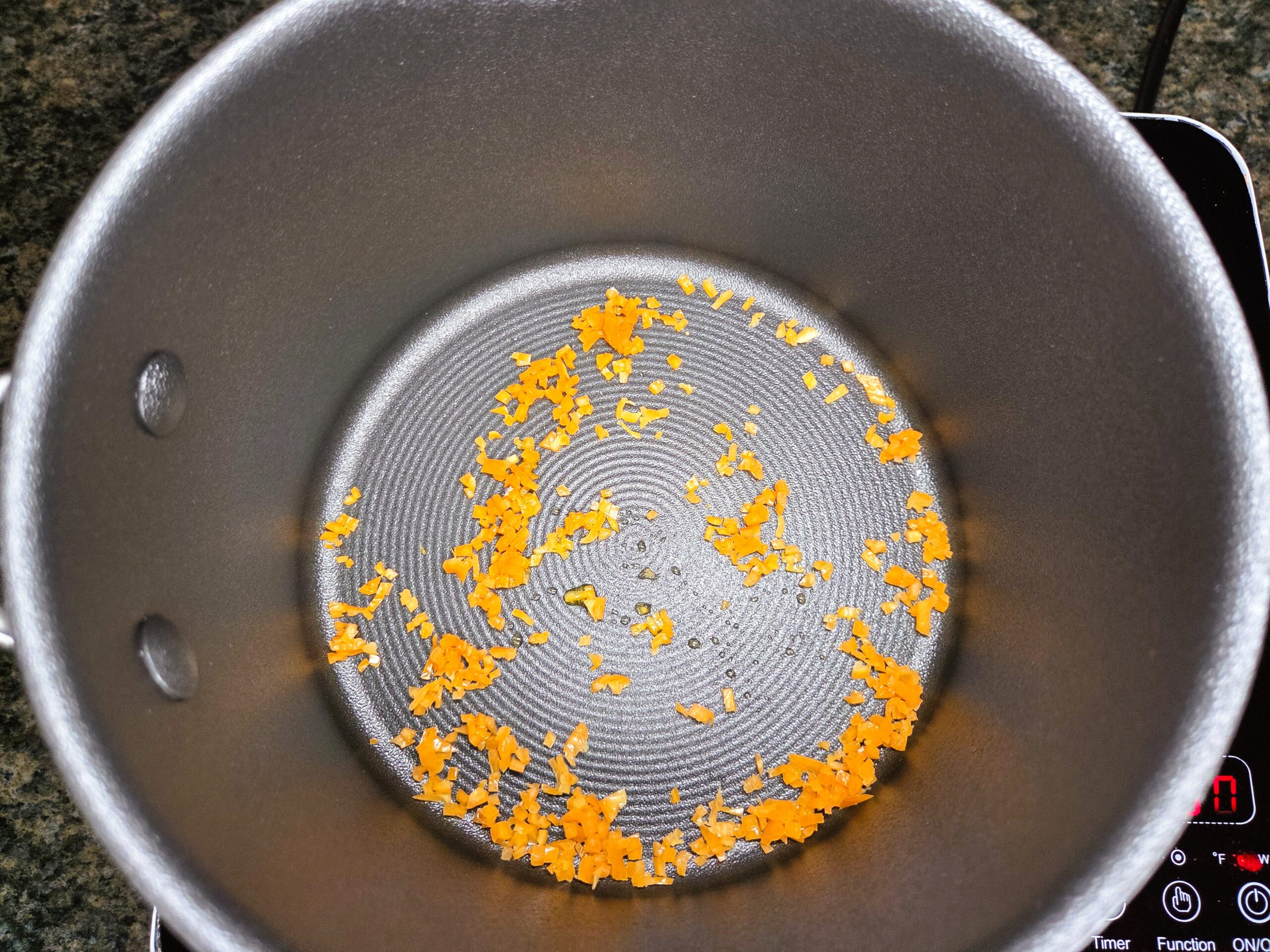 Add 1 teaspoon of oil, such as vegetable or canola, to a medium saucepan over medium heat. Add the minced habanero peppers to the saucepan and sauté for a couple of minutes.
