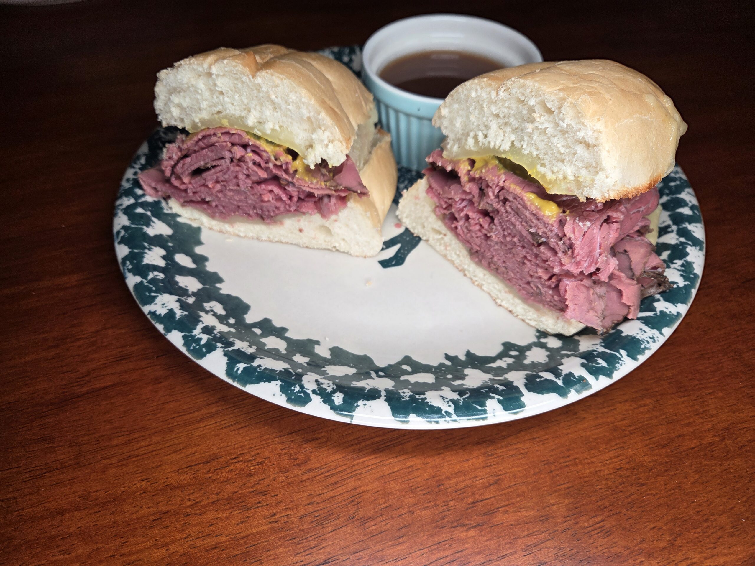 Growing up in Southern California, my husband and I loved the pastrami sandwiches at “The Hat” — stacked with peppery pastrami, melty provolone, tangy mustard, and crunchy pickles. This homemade version brings those same bold flavors into our own kitchen, no road trip required.