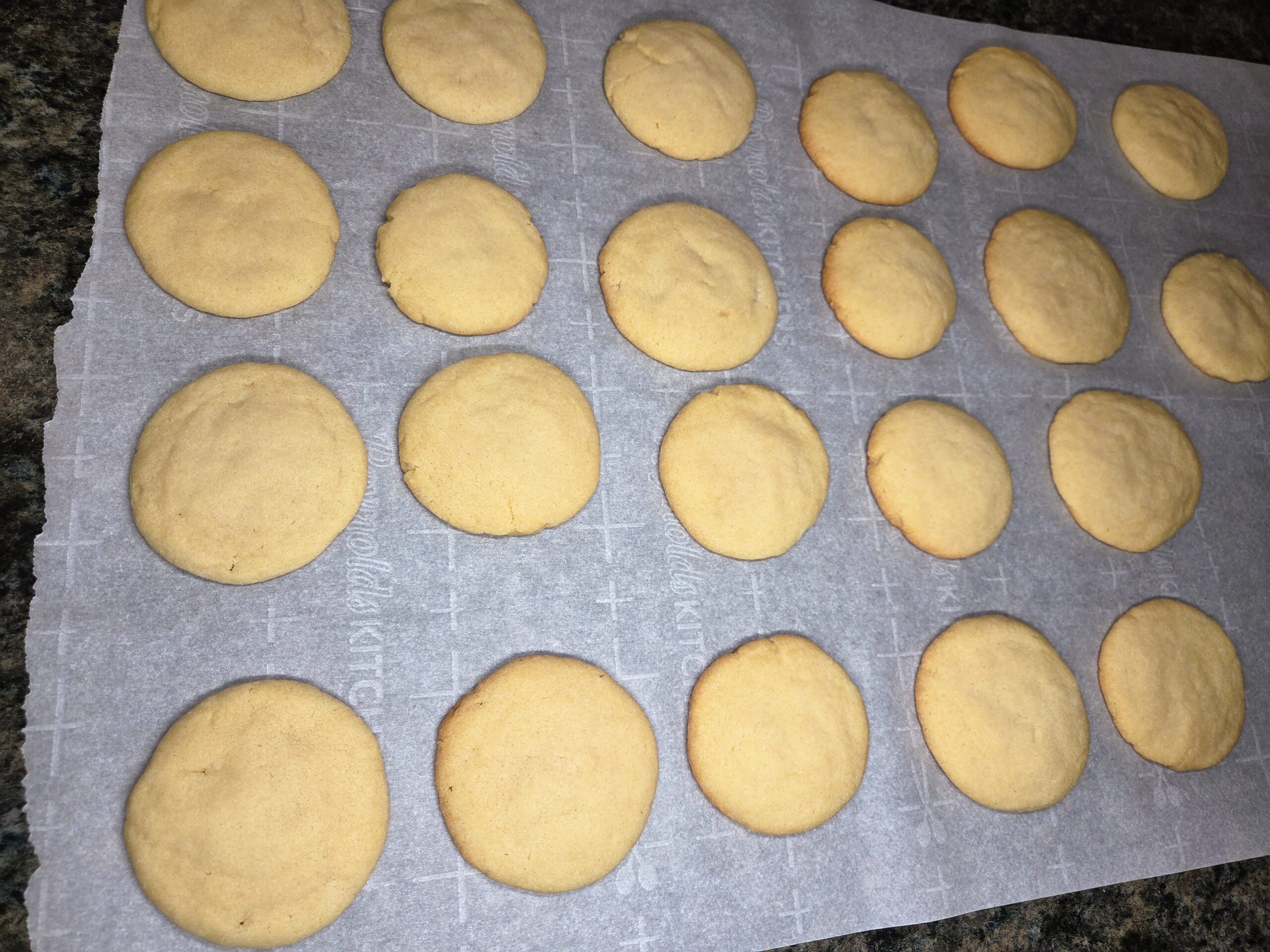 Cool on a parchment paper-lined countertop or a baking rack.