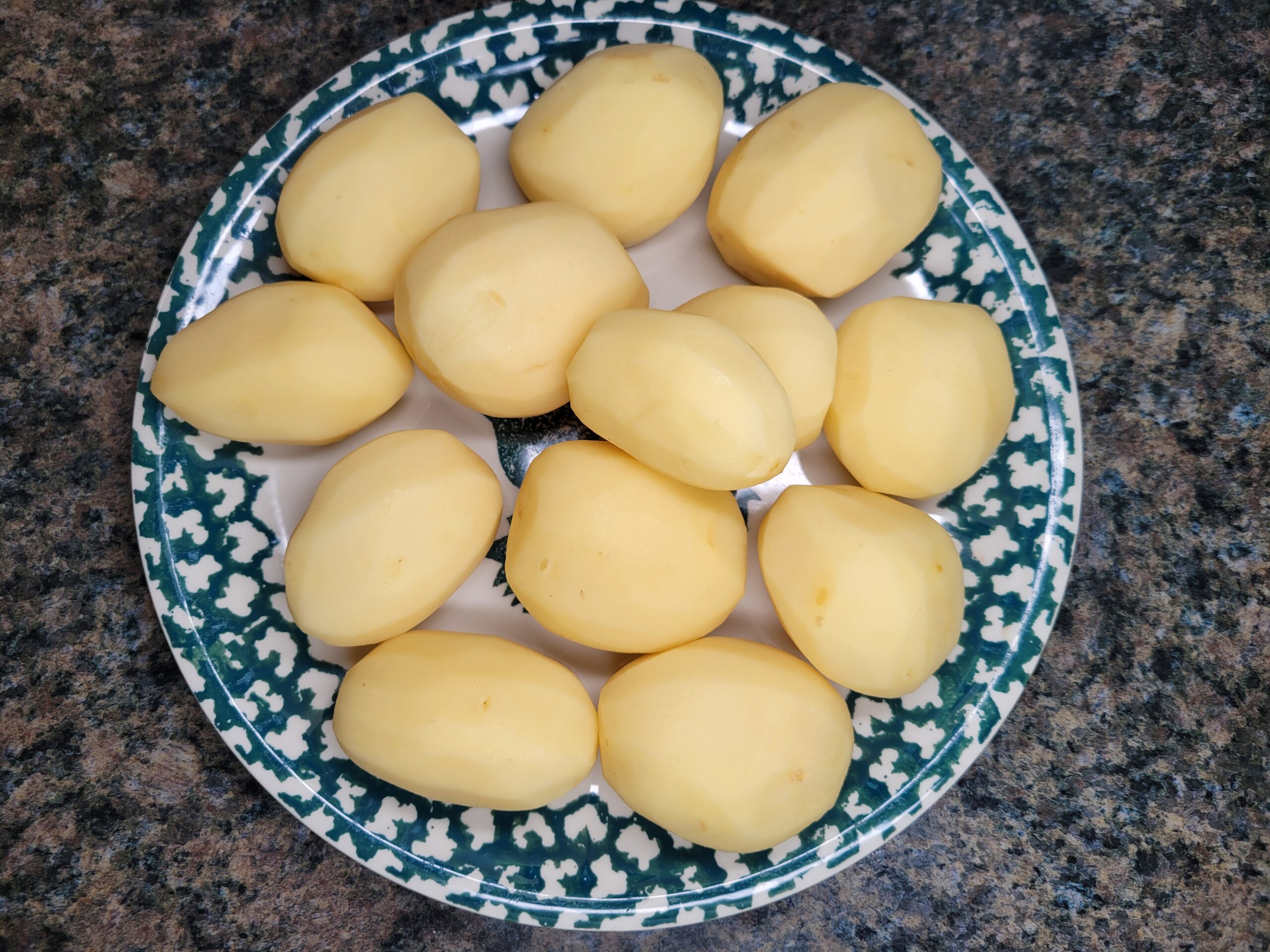 Preheat the oven to 375°F and prepare a 9x13-inch baking dish with non-stick cooking spray. Peel three pounds of Yukon Gold potatoes and slice them thinly using a mandolin.
