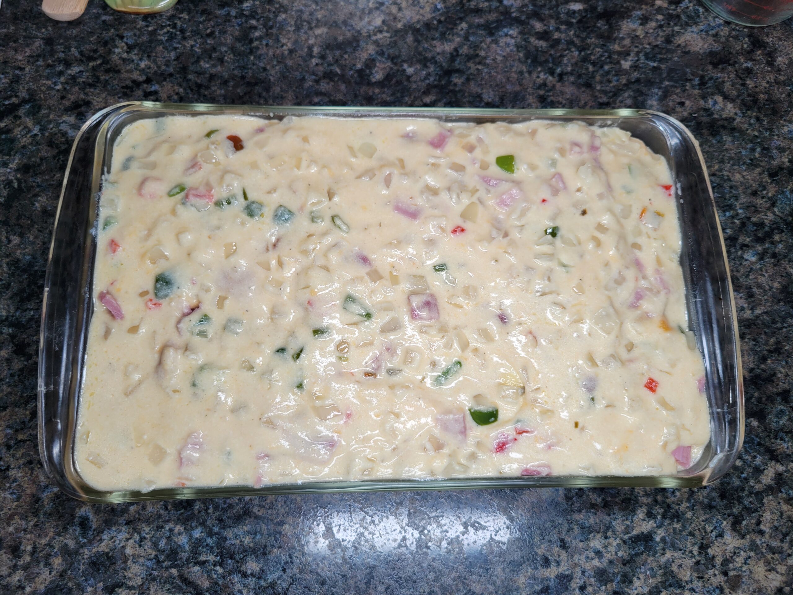 Sprinkle half of the ham over the top of the potatoes. Pour half of the cheese sauce over the ham and potato layers.