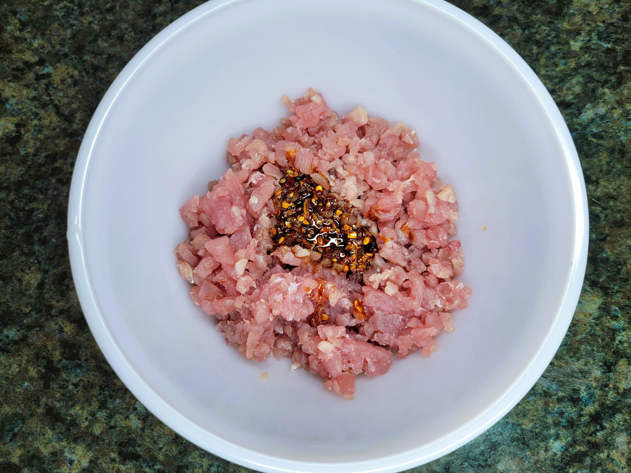 Add the chili crunch sauce to the minced tuna and mix until combined.