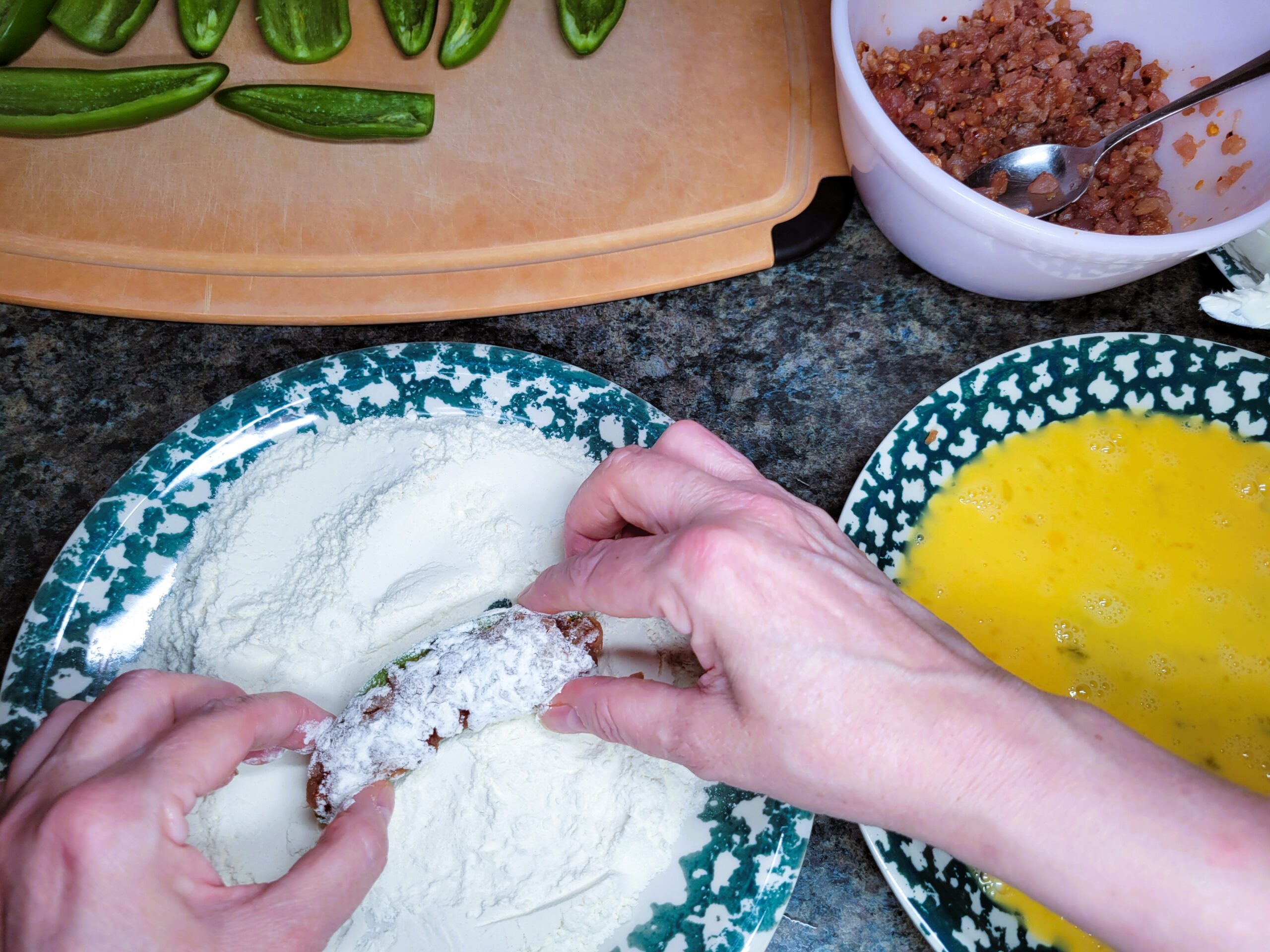 Roll the Jalapeno Tuna Bombs in all-purpose flour.