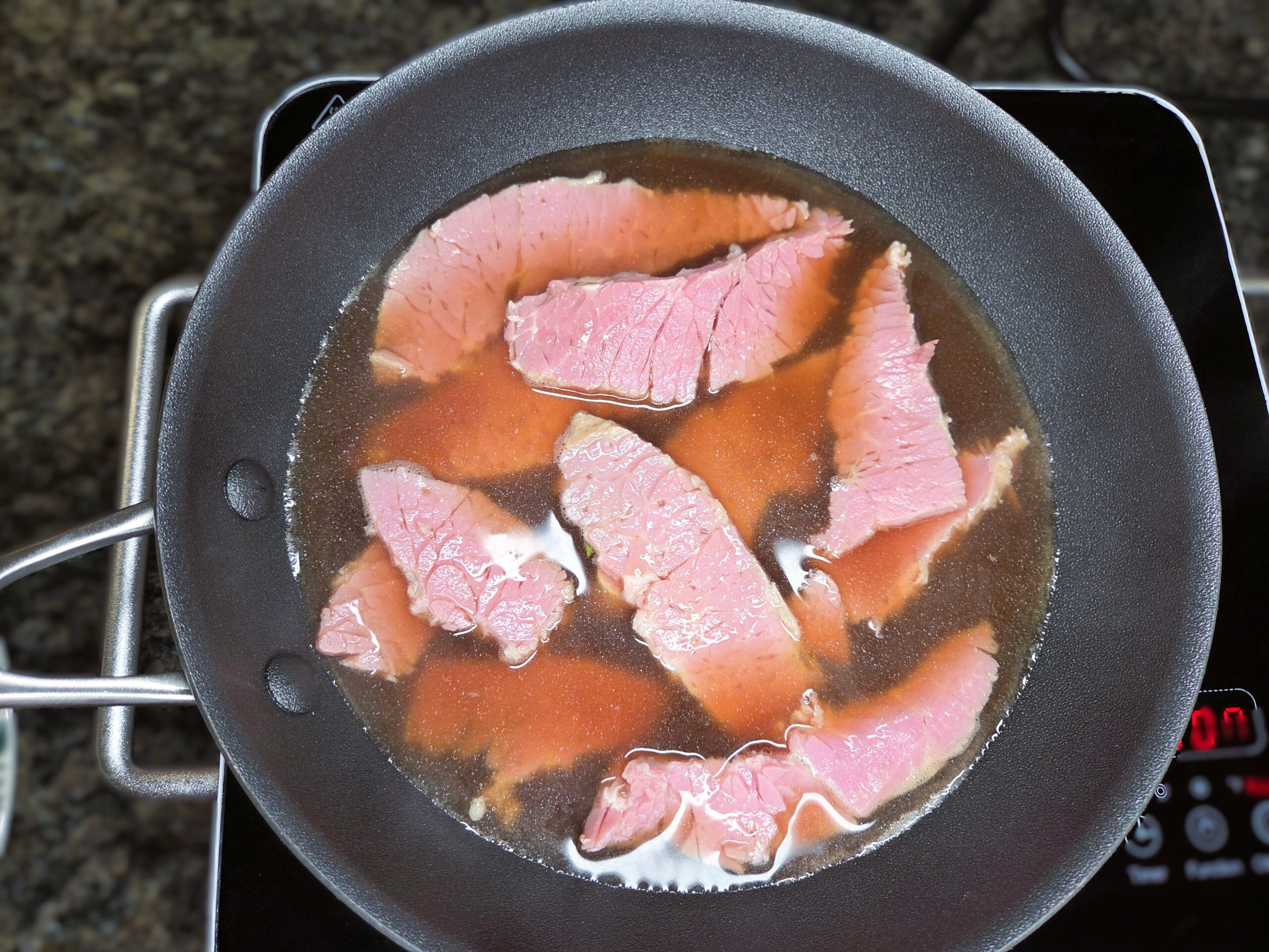 To reheat corned beef, warm ½–1 cup of beef broth in a pan and add the slices, letting them heat gently. Drain on paper towels, then continue assembling the sandwich — this keeps the meat juicy and tender.