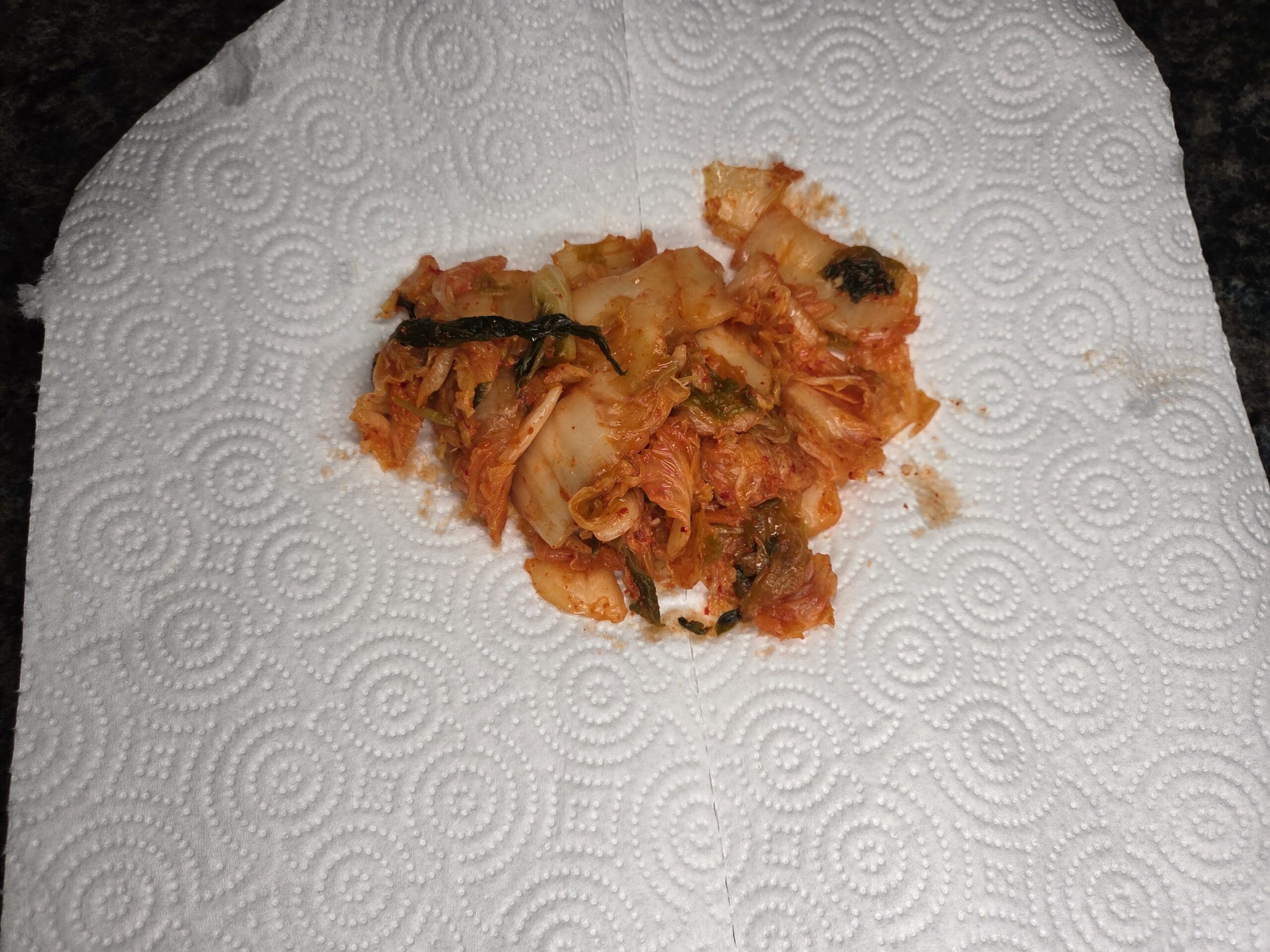 To heat the kimchi, first pat it dry and squeeze out the excess liquid so it doesn't make the bread soggy. Warm in a small pan just until heated through, or microwave it briefly.