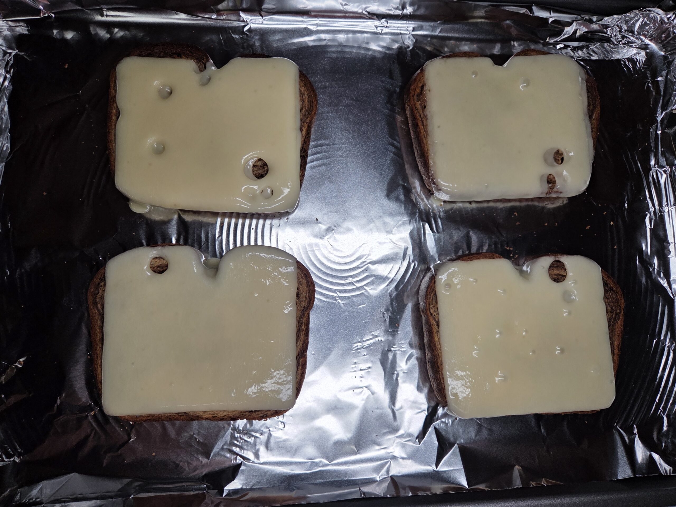 Preheat the broiler and line a baking sheet with foil. Toast both sides of the bread until lightly golden, then add the cheese and return it to the broiler just until it melts. Toasting both sides first helps the bread stay sturdy and hold up to the juicy corned beef and kimchi or sauerkraut.