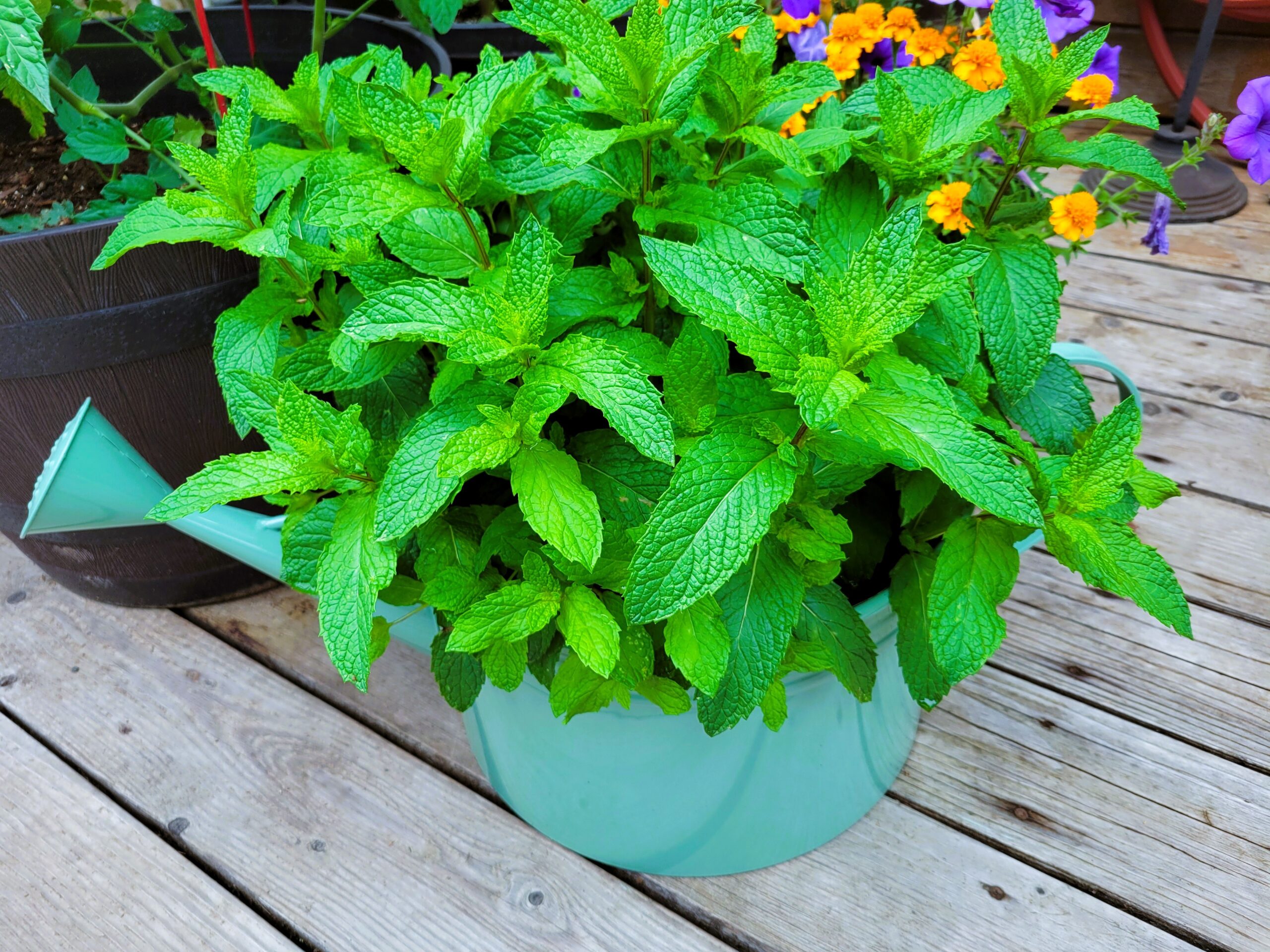 I grow fresh sweet mint in my garden in the spring and summertime it's so refreshing! Once boiling remove from heat and add mint leaves. Allow the mint leaves too steep in the syrup for 15 minutes.