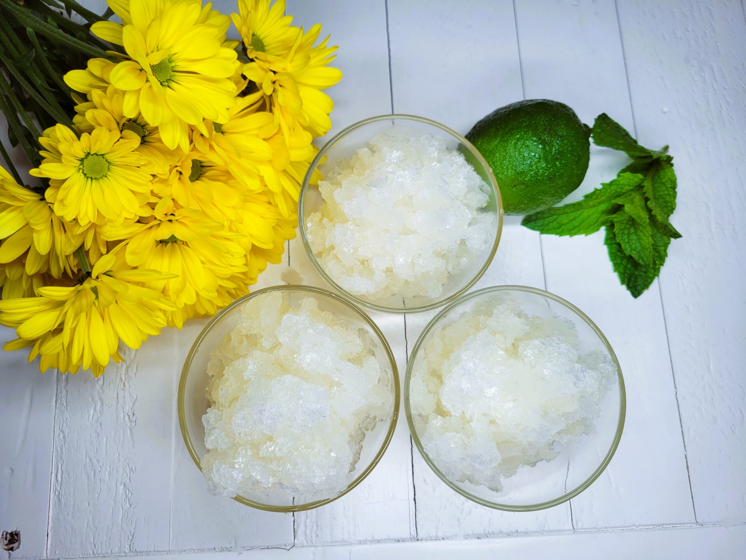 Granita originated in Sicily, Italy, and is semi-frozen with a combination of citrus and herbs. This dessert is made from a mixture of lime juice, mint, sugar, and water that is frozen and then scraped with a fork to create icy crystals then served. This recipe would also be phenomenal with a little vodka added for a fancy, refreshing adult beverage!