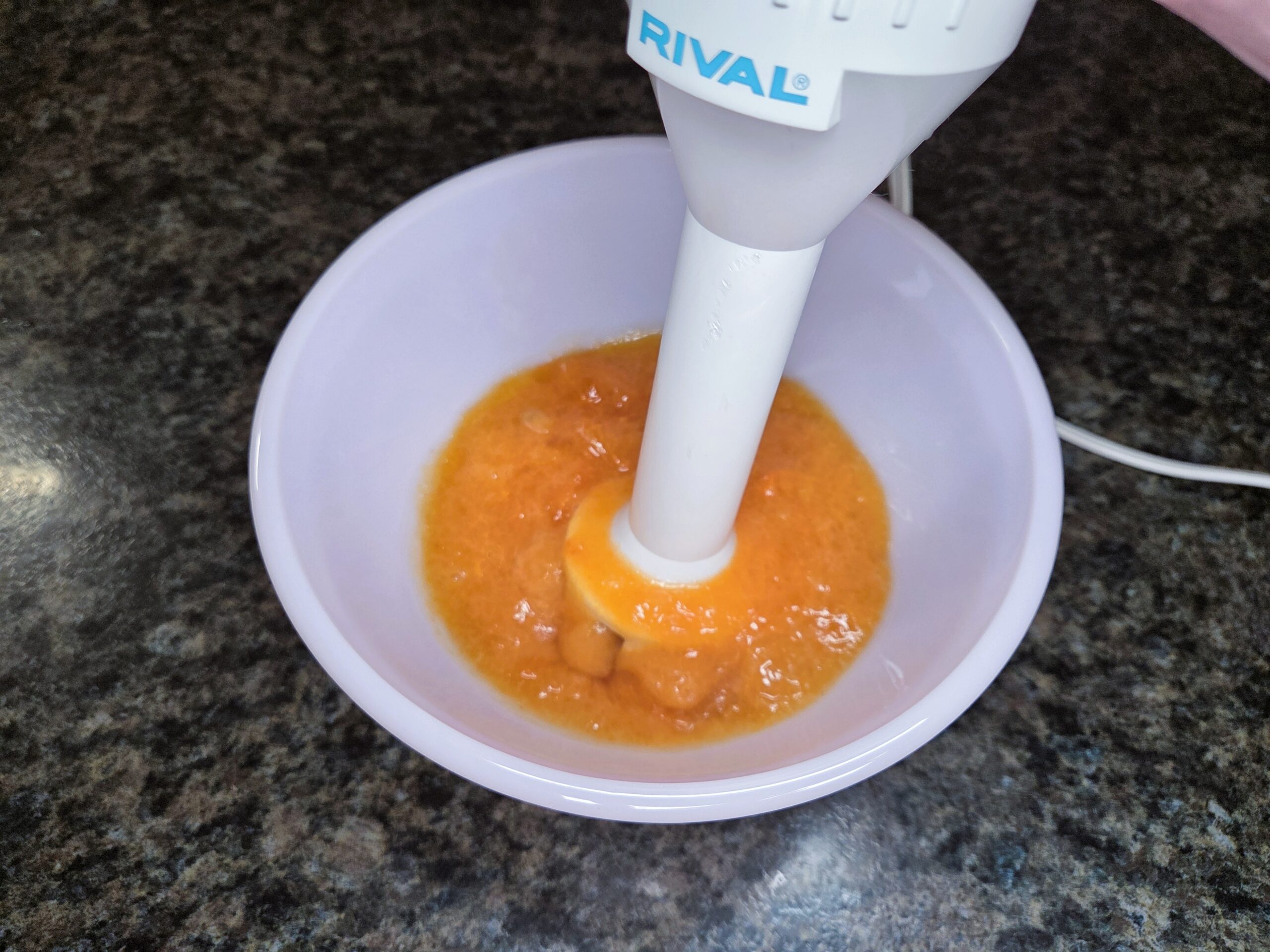 Prepare the persimmon purée: Choose soft, fully ripe persimmons for the sweetest flavor. Trim off the leafy tops, peel the skin with a vegetable peeler, and cut the fruit into chunks. Use an immersion blender to purée until smooth or mash with a fork. It's fine if there are a few chunks or pieces of persimmon in the puree.