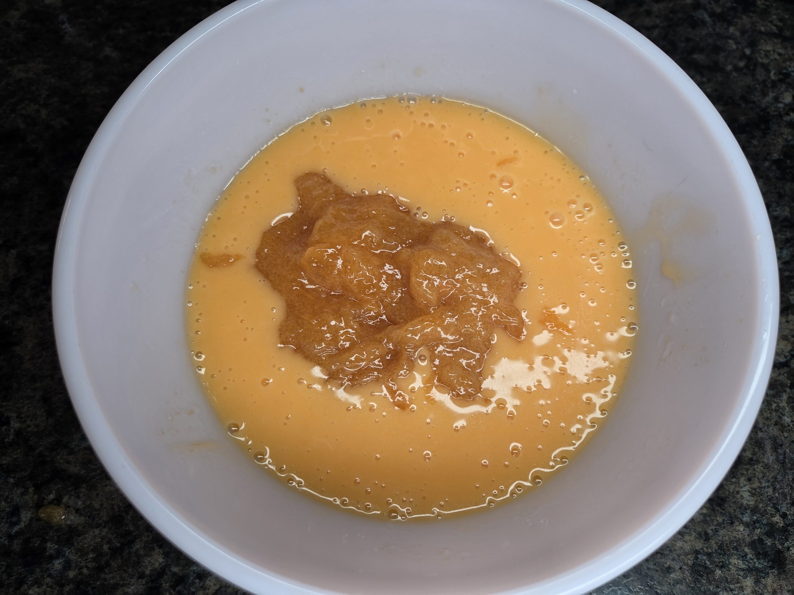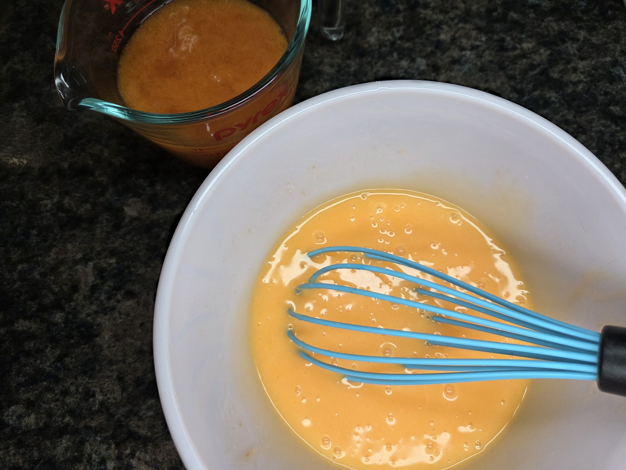In a medium bowl, whisk together 2 eggs and 3/4 cup of vegetable oil. Then add in the persimmon puree.