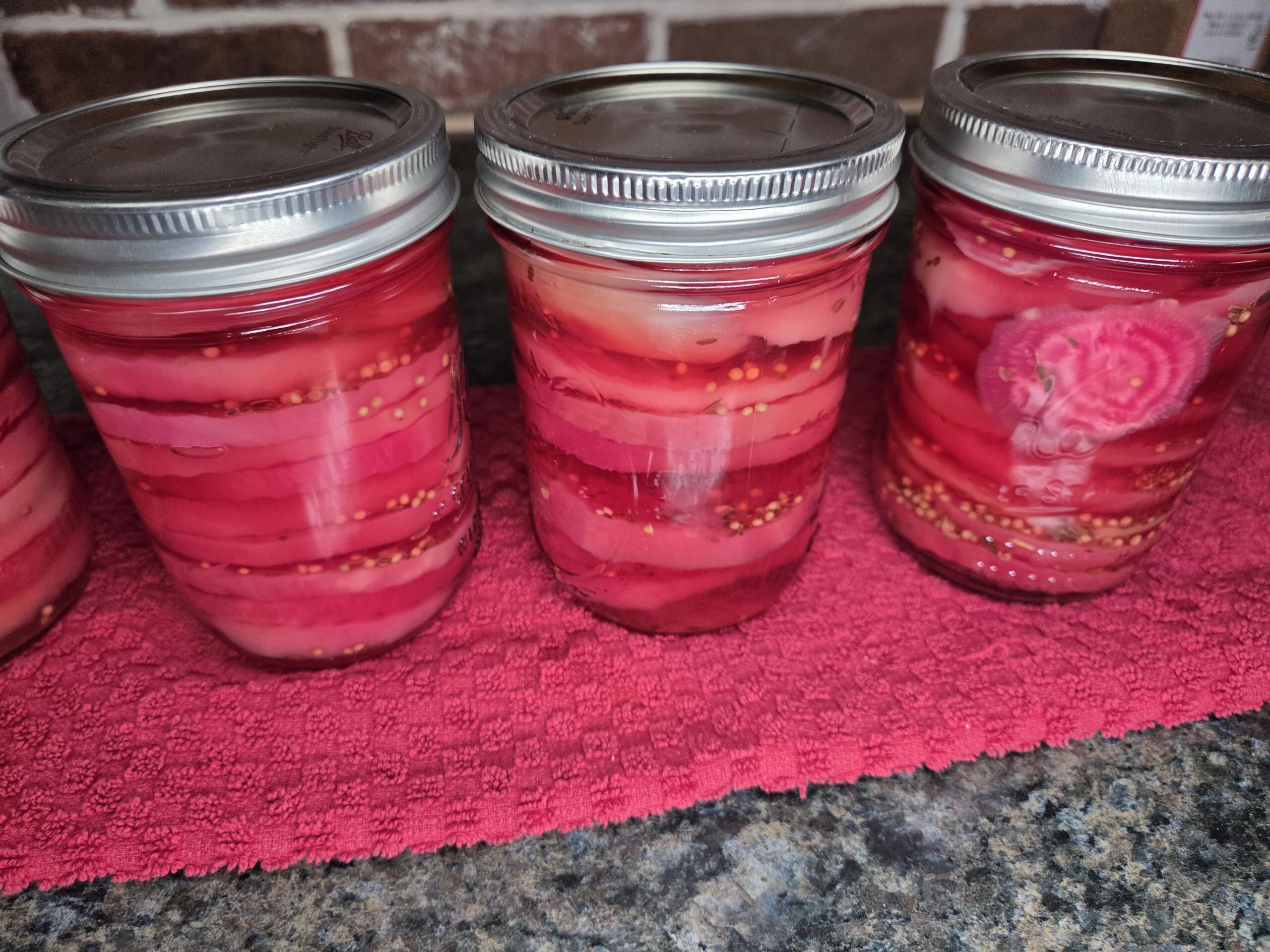 Chioggia beets are beautiful pink‑and‑white striped beets with a mild, sweet flavor. They originated in the coastal town of Chioggia near Venice, Italy, and are often called candy‑stripe or bullseye beets because of their striking rings. This recipe and tutorial make four pints of pickled beets, and we offer three versions—red, golden, and Chioggia—so you can choose the variety that best suits your garden or your taste. The recipe and care instructions are identical for all three, but we’ve included photos of each type so you can see exactly how the process looks from start to finish. Every year, my husband and I grow a large garden, and beets are one of our favorite crops. They’re delicious in salads, perfect for snacking, and honestly irresistible straight from the jar. If you’d prefer to skip the canning step and make simple refrigerator pickled beets, you can follow the same recipe and simply omit the canning portion.