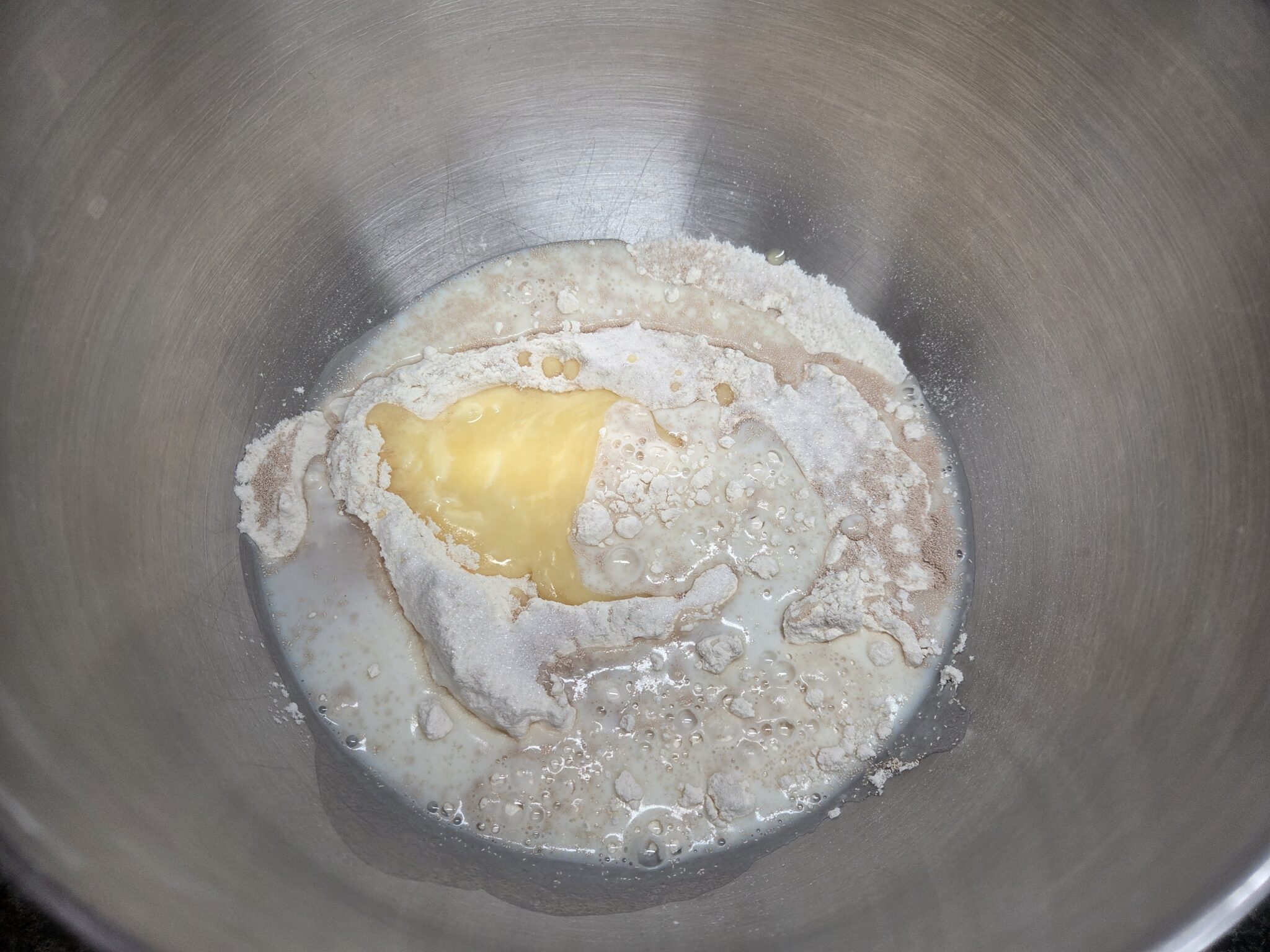 To make the dough, combine 1 cup warm milk, 2 2/3 cups bread flour, 1 teaspoon salt, 2 tablespoons granulated sugar, 2 teaspoons instant yeast, and 4 tablespoons unsalted, room-temperature butter in a large bowl. Mix everything together by hand or with a stand mixer using a dough hook, or with a bread machine set to the raw dough cycle. Knead the dough by hand for 15 minutes, with a stand mixer on medium-low speed for 10ā12 minutes, or in a bread machine until the dough cycle completes.