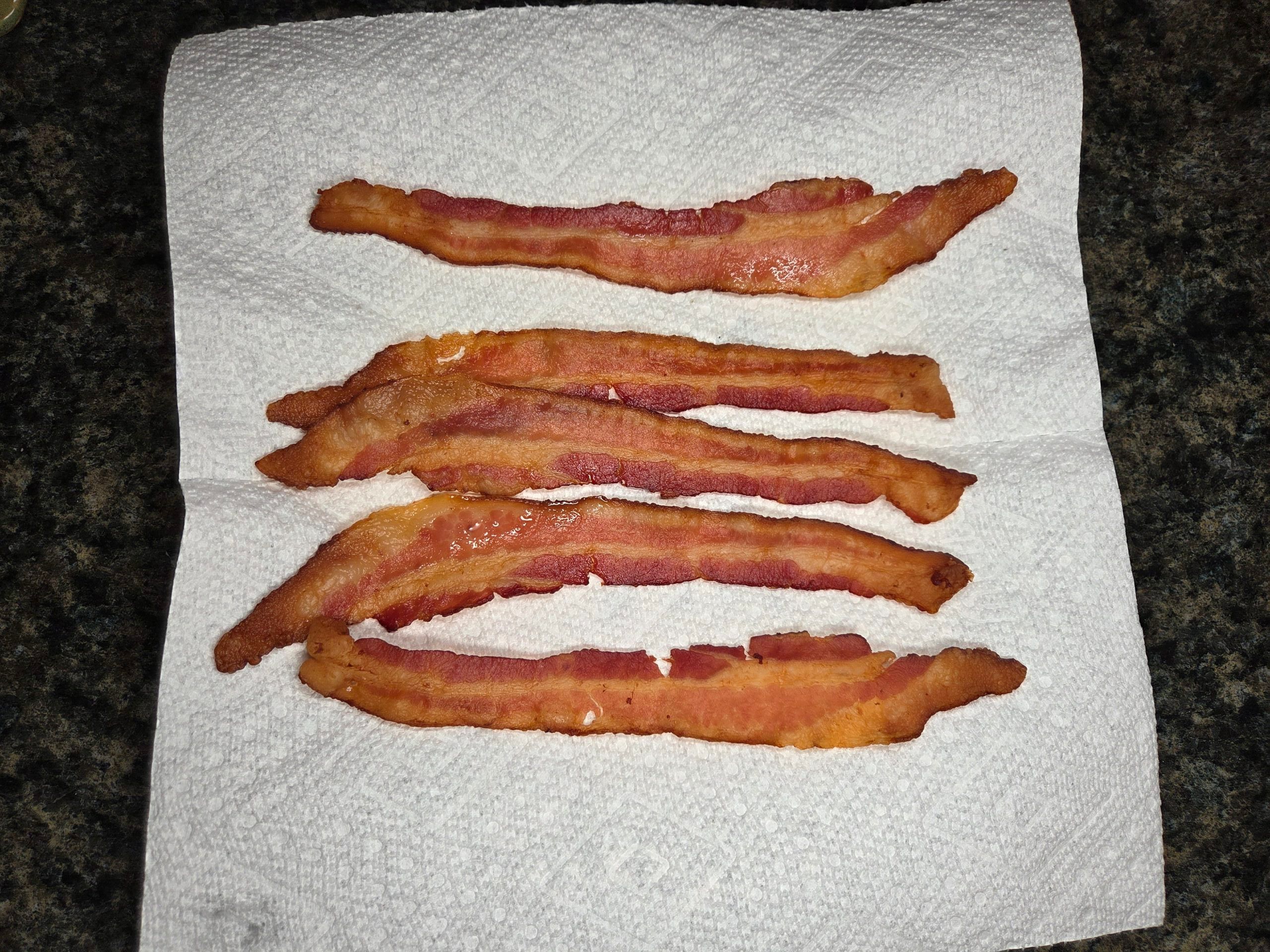 Cook 5 slices of bacon until golden brown, then chop and set aside. Wipe the pan clean.