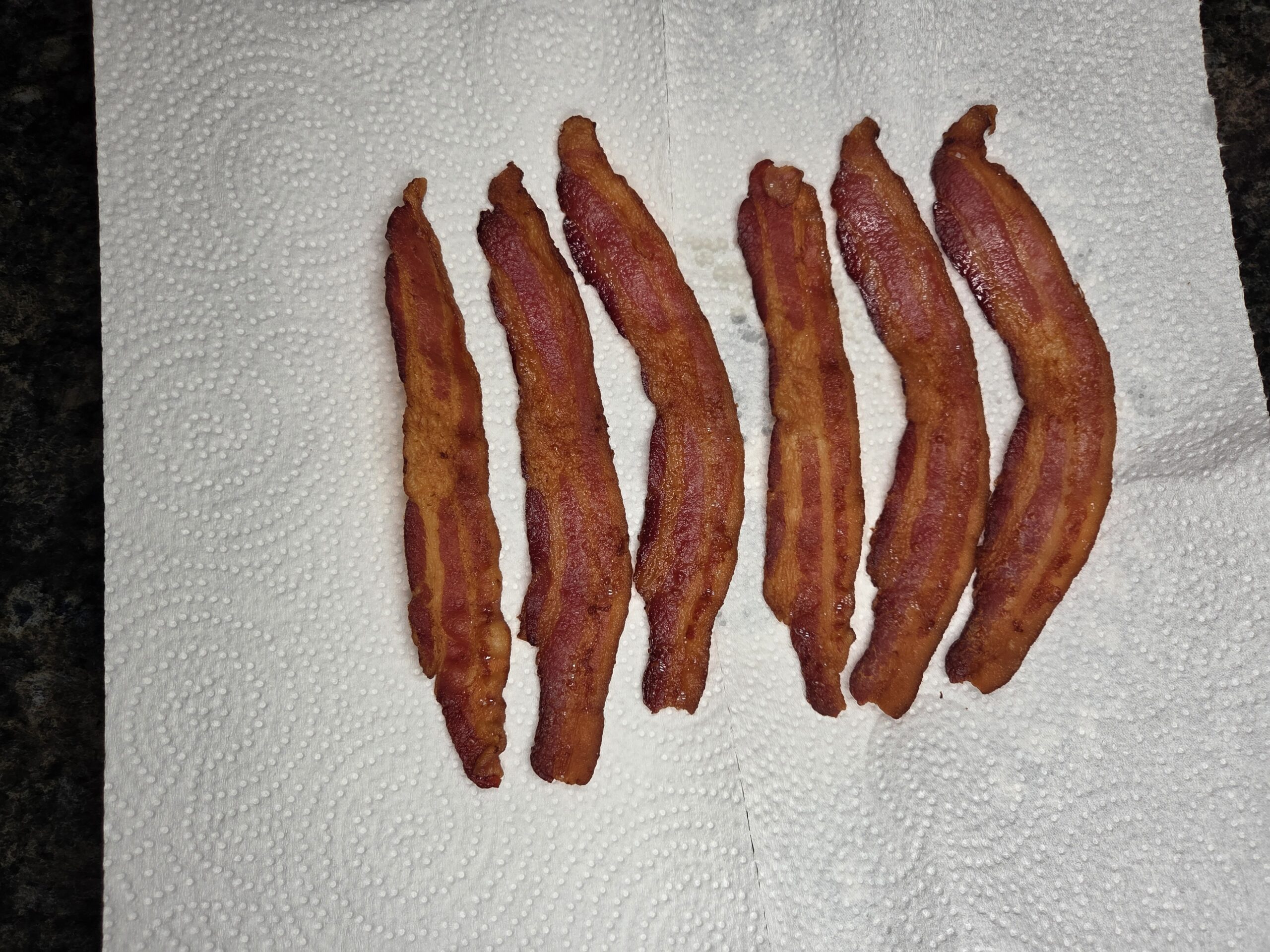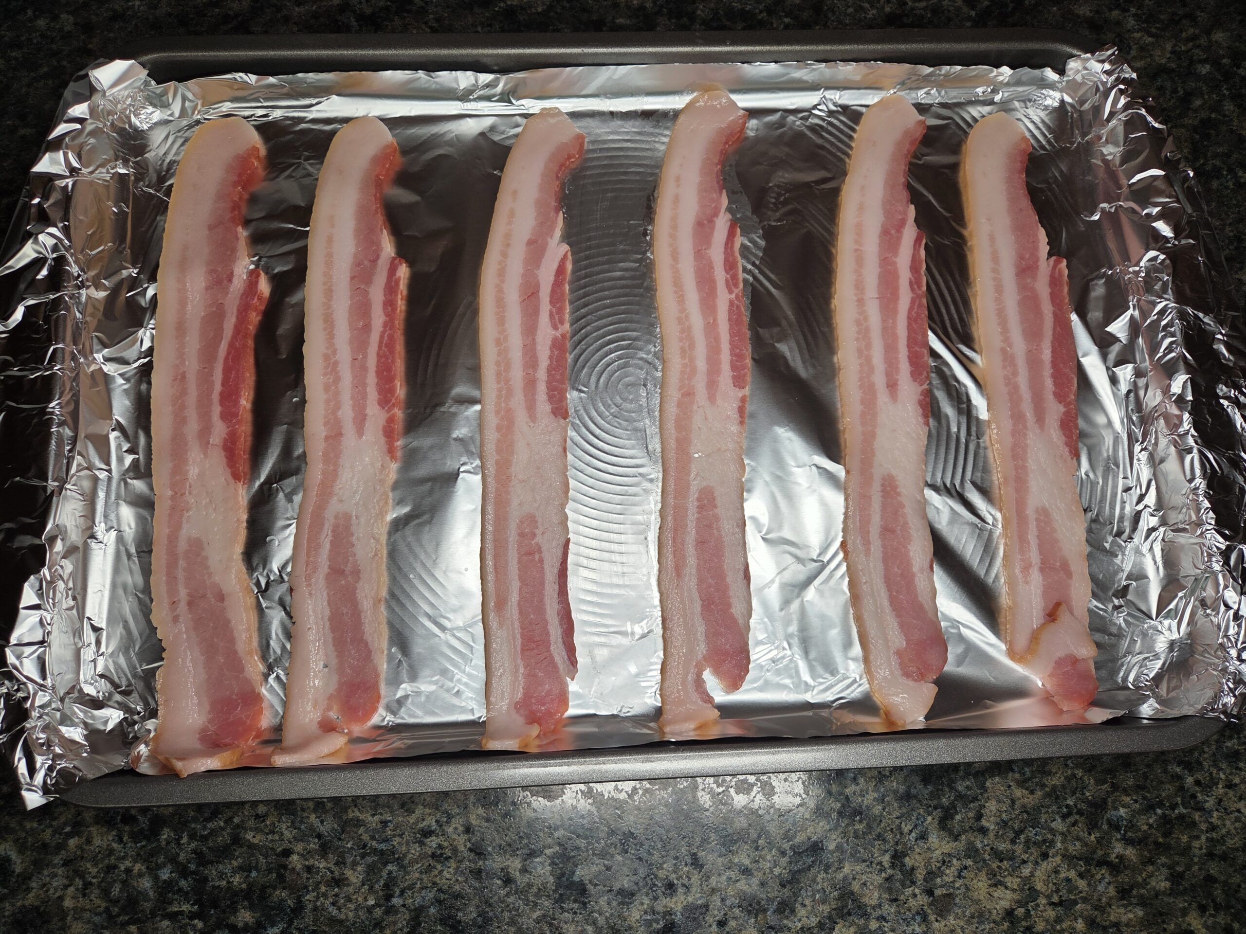 Cook bacon, chop it, and set it aside. I like to cook my bacon in the oven at 400 degrees on a baking sheet, turning it 3 times during the 15–20-minute cook time, depending on the thickness of the bacon and the number of slices.