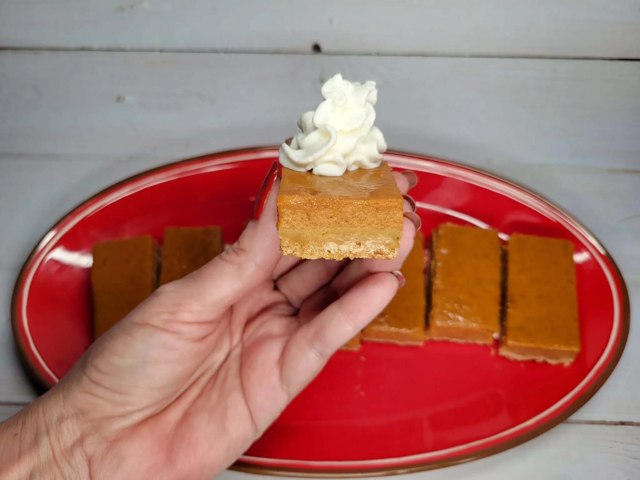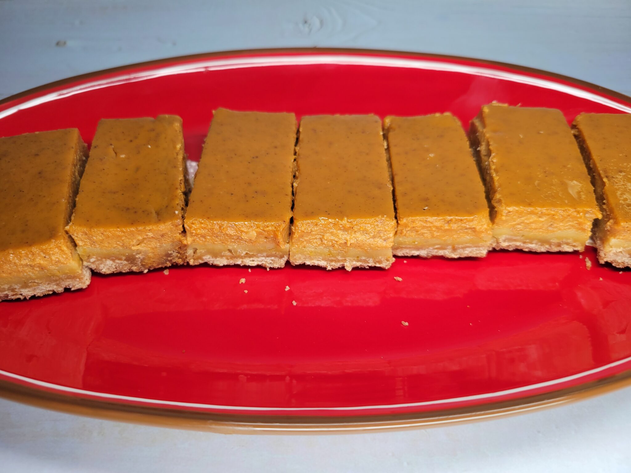 Cut the pumpkin pie bars into your preferred shapes and sizes.
