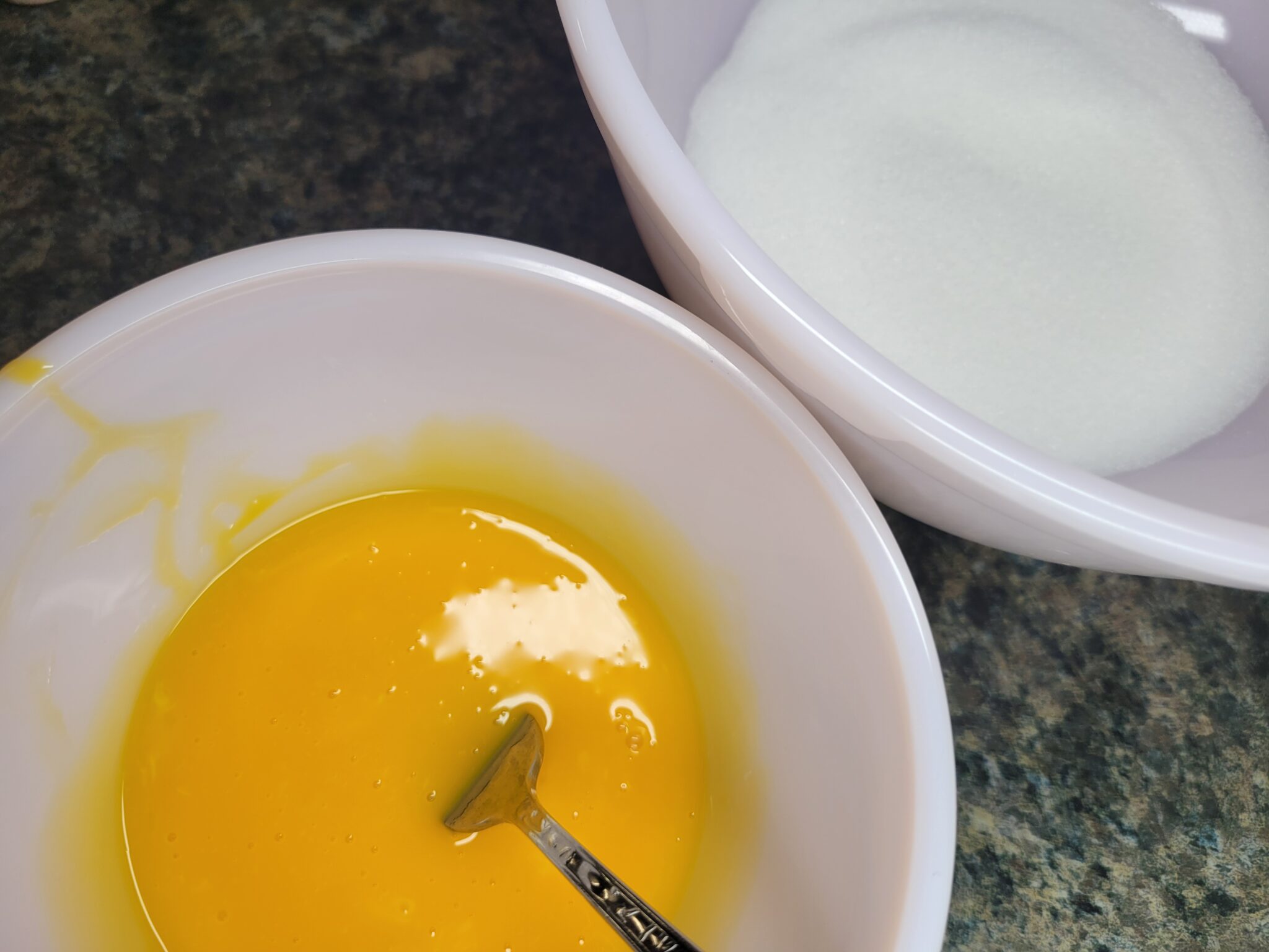 In a large bowl, whisk 3/4 cup sugar and 6 egg yolks until mixture starts to lighten in color.