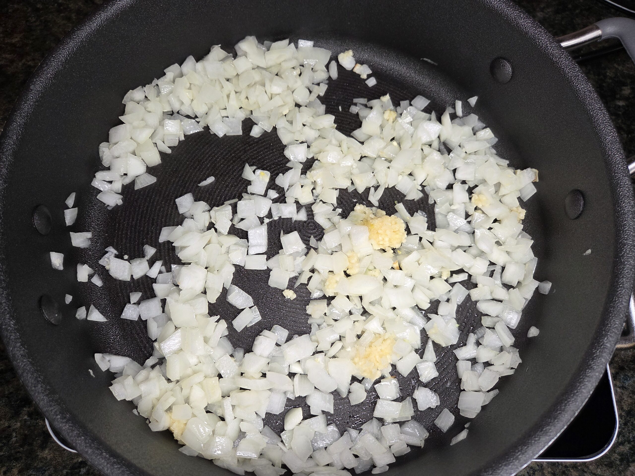 In a medium skillet, add 1 tablespoon of olive oil over medium heat, then add 1 small diced yellow onion. Sauté until softened, about 5-6 minutes, then add 3-4 minced garlic cloves and sauté a couple more minutes, until fragrant. Add 2 tablespoons of tomato paste and stir until just combined. Remove the skillet from the heat and set it aside.