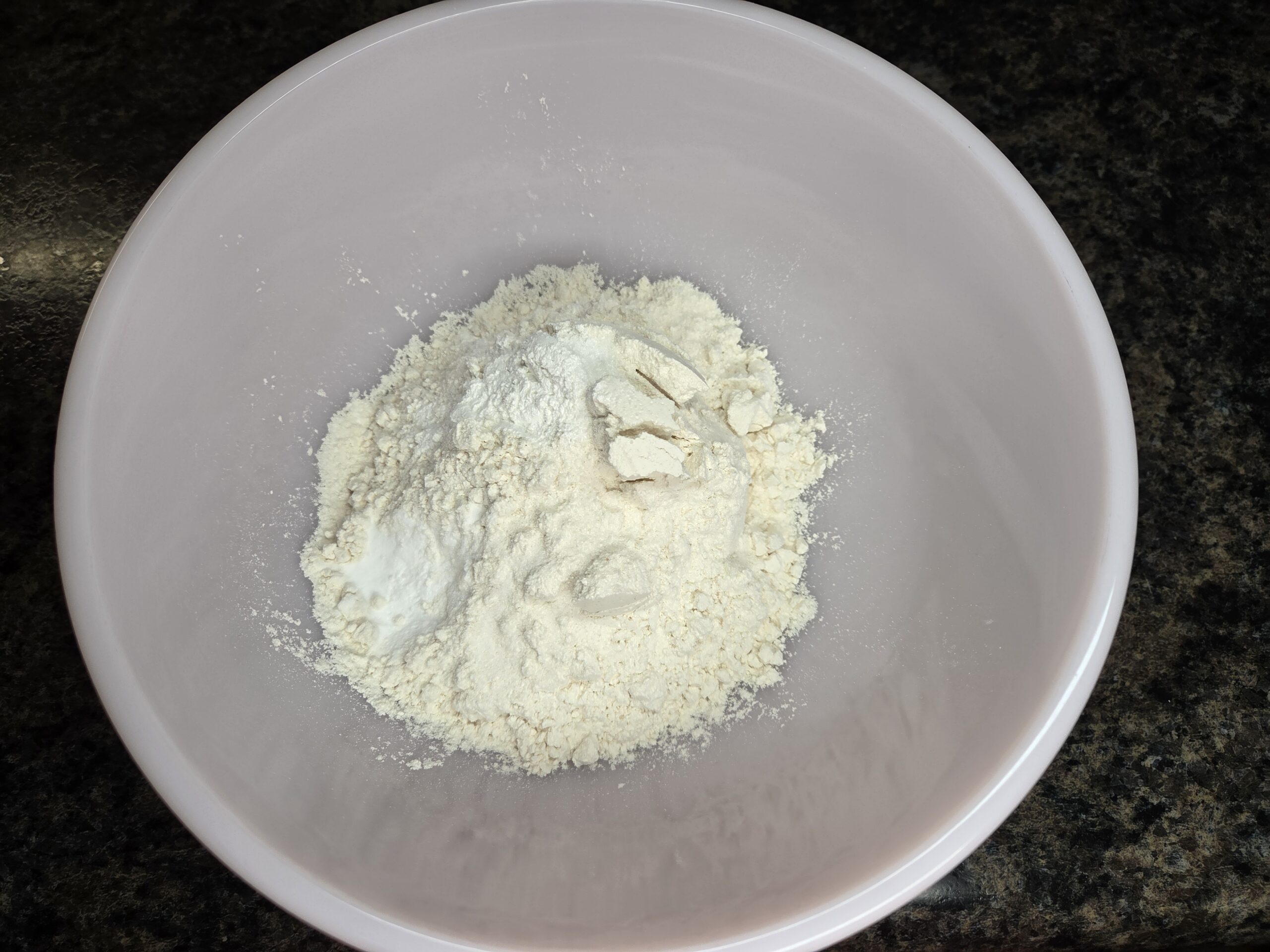 In a medium bowl, whisk together 1 1/2 cups all‑purpose flour, 1 teaspoon baking powder, 1/2 teaspoon baking soda, and 1/4 teaspoon salt until well combined. Set aside.