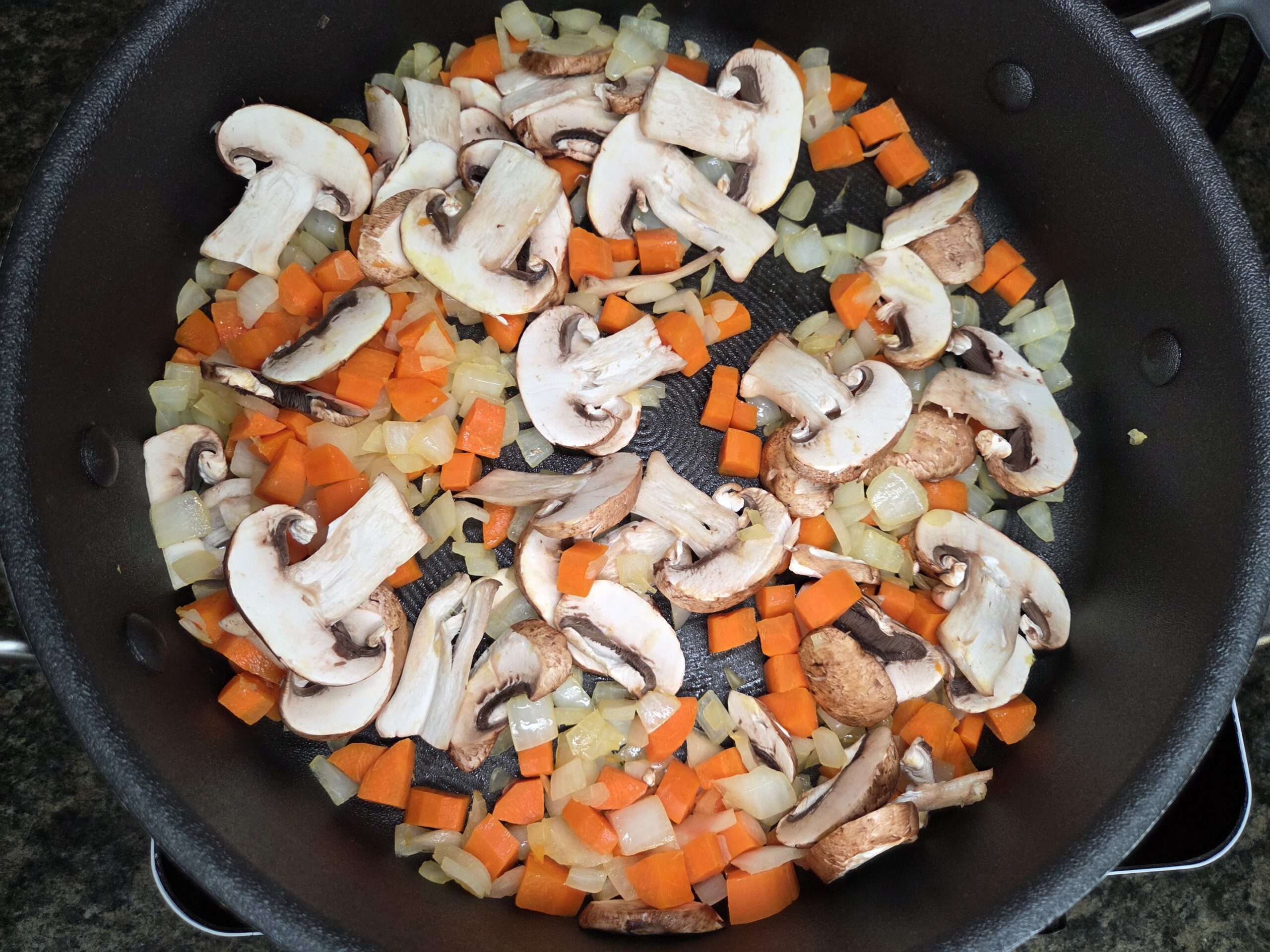 Add 2 cups of sliced mushrooms and sauté until golden brown.